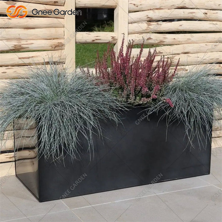 กระถางปลูกต้นไม้ทรงสี่เหลี่ยมทันสมัย ขนาด 133 ลิตร ทำจากเหล็กชุบสังกะสีสีดำ สำหรับใช้ในเชิงพาณิชย์และที่อยู่อาศัย ทนทาน ป้องกันสนิม ใช้ได้ทั้งภายในและภายนอกอาคาร