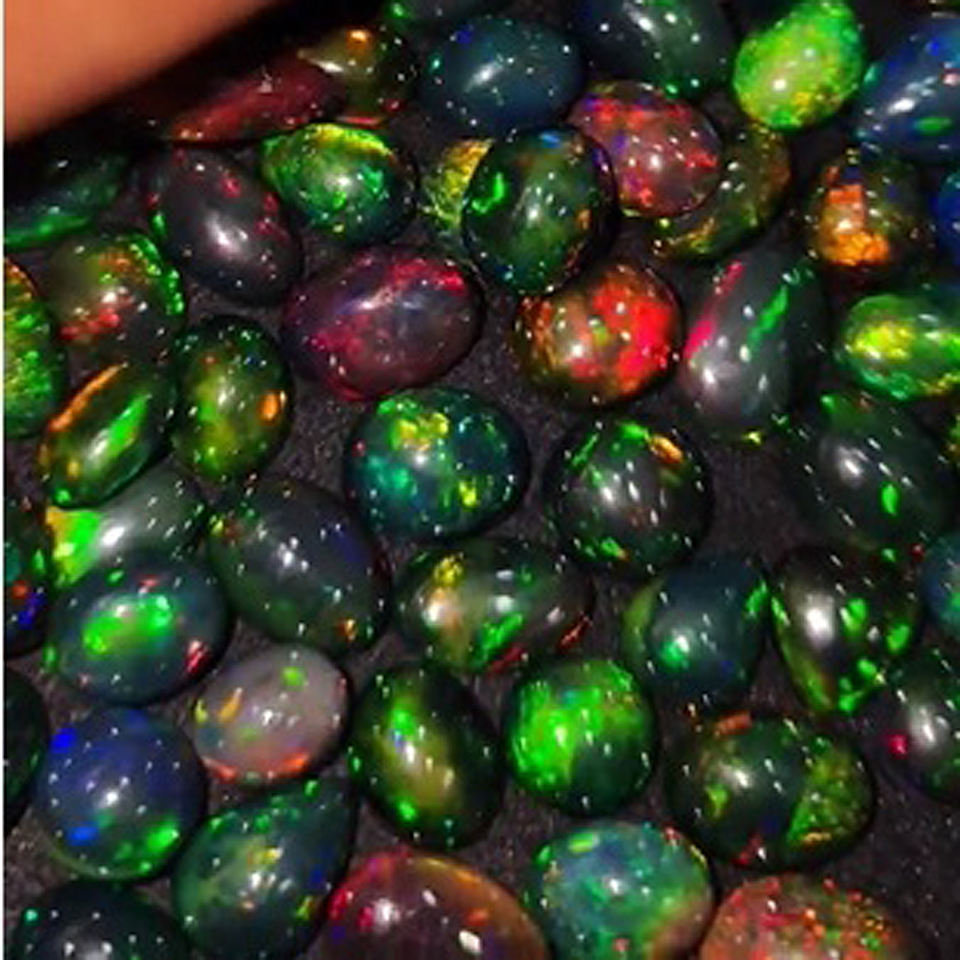 โอปอลดำเอธิโอเปียธรรมชาติ 137 ชิ้น ขนาด 10 มม. ถึง 15 มม. รูปทรงวงรี ทรงลูกแพร์ ทรงแปดเหลี่ยม คาโบชอง น้ำหนัก 288 กะรัต ขายโดย Iroc Sales Gemstone ราคา US$923