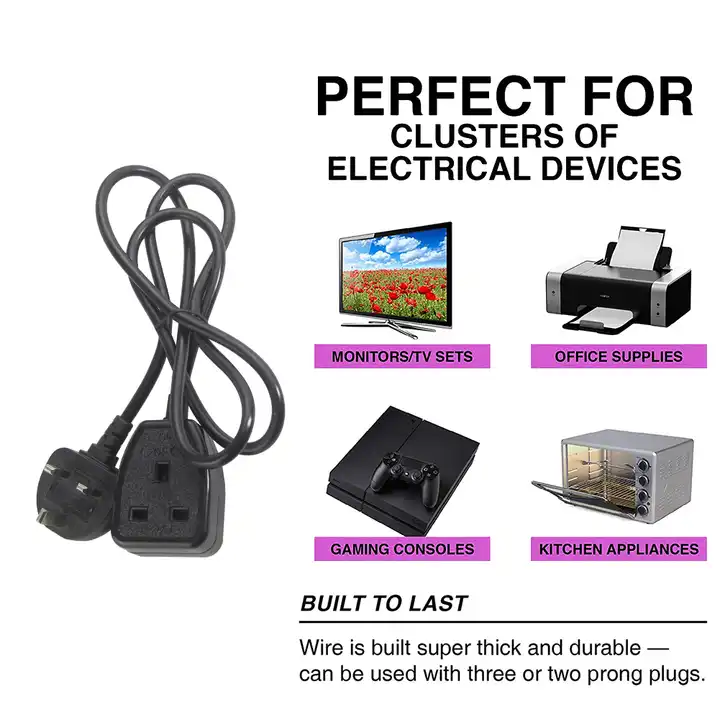 13A BS ปลั๊กตัวผู้ไปยังเต้ารับตัวเมียสายไฟต่อสายไฟสีขาวดำอุปกรณ์อิเล็กทรอนิกส์สำหรับผู้บริโภค