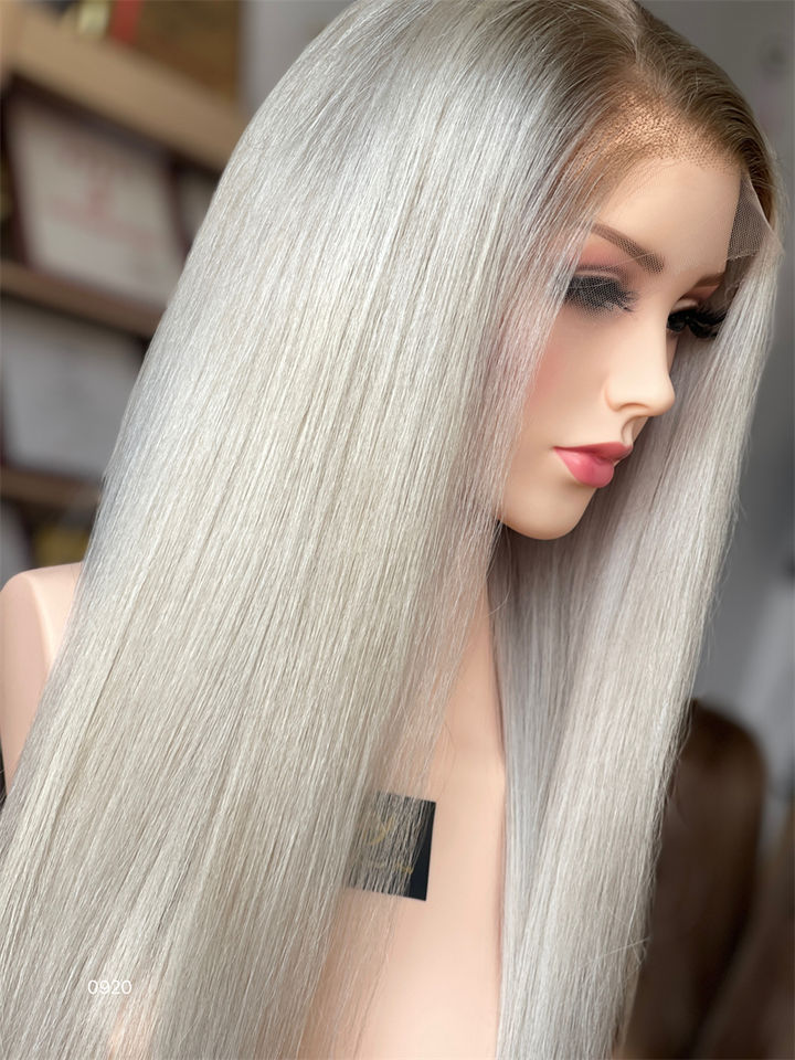 วิกผมสีบลอนด์ดิบสำหรับผู้หญิงผมมนุษย์ยาว18นิ้วแบบเย็บปะติด HD 13*5เกรด13A