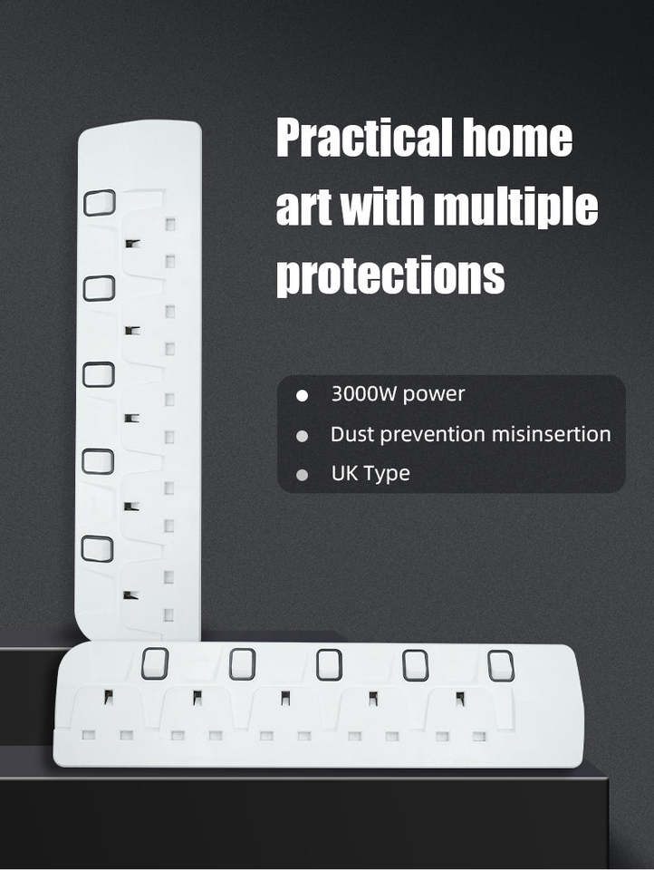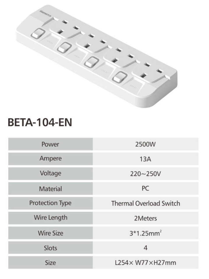 ปลั๊กพ่วงป้องกันไฟไหม้มาตรฐาน 13A รุ่นใหม่แบบอังกฤษชนิด BETA วัสดุวิศวกรรม 3/4/5 ช่องเสียบ