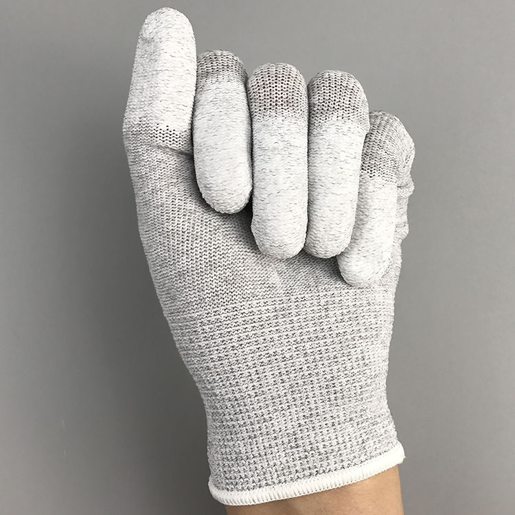ถุงมือป้องกันไฟฟ้าสถิตย์ 13G ไนลอนผสมคาร์บอนไฟเบอร์ ป้องกันไฟฟ้าสถิตย์ ESD แบบ PU กระชับมือ