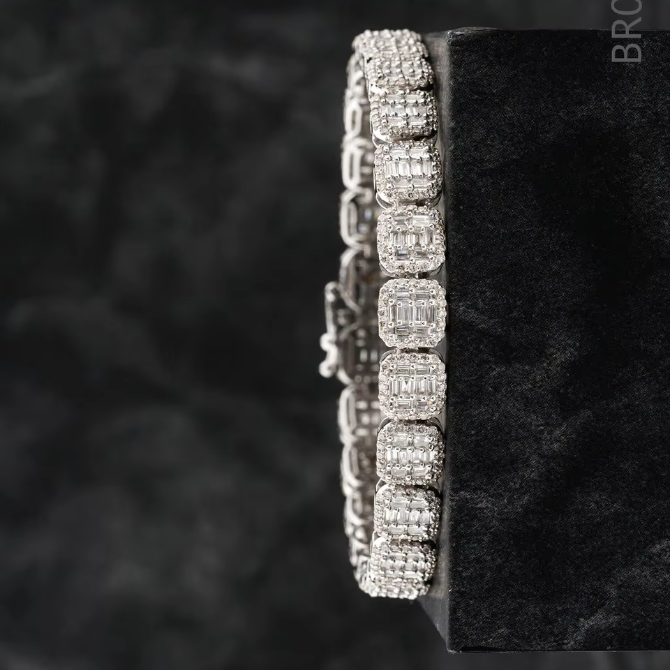 13MM Square Tennis Bracelet 925 Silver Hip Hop Jewelry Iced Out Baguette Moissanite Diamond Bling Cluster Circle Tennis Bracelet