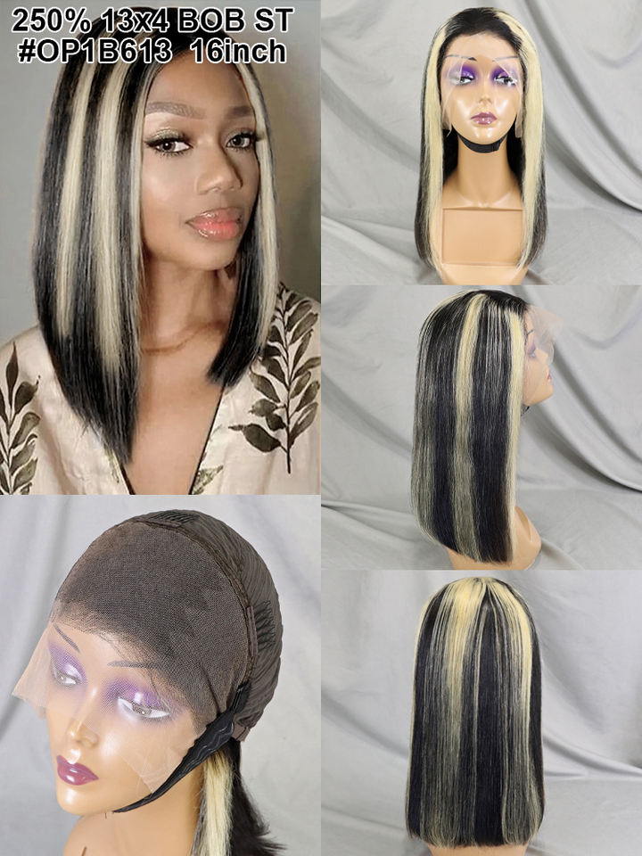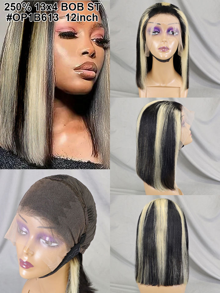 13X4 BOB Straight Wig in OP1B613 Color 250% Density High Quality Human Hair Wigs