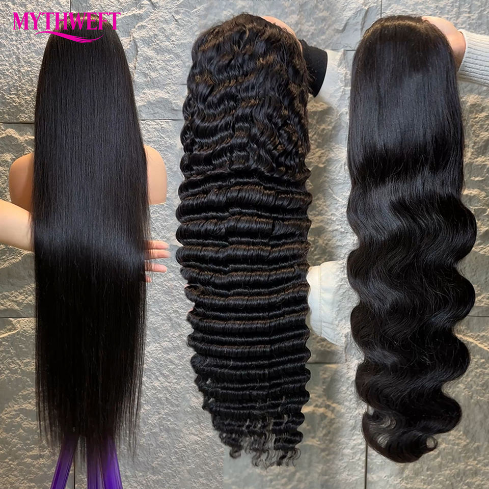 วิกผมลูกไม้ HD แบบไม่ต้องใช้กาว 13x4 ผมตรงแบบตัดตรง ผมอินเดียแท้แบบดิบ แบบดับเบิ้ลดรอน ผมบริสุทธิ์ สีดำ ลูกไม้โปร่งใสสำหรับผู้หญิง