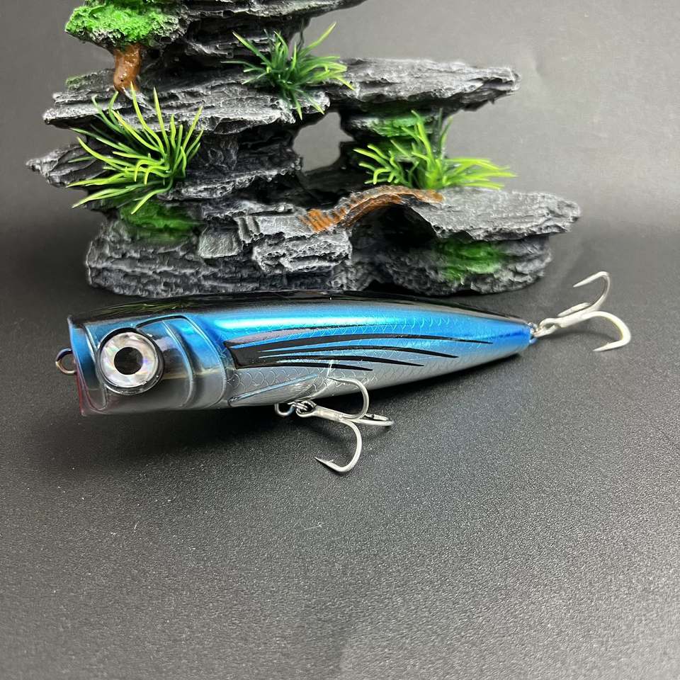 เหยื่อปลอมแบบป๊อปเปอร์ขนาด 13 ซม. น้ำหนัก 60 กรัม เหยื่อแข็งทำจากพลาสติก สำหรับตกปลาทะเล เหยื่อตกปลาแบบทรอลลิ่ง เหยื่อปลอมแบบผิวน้ำ