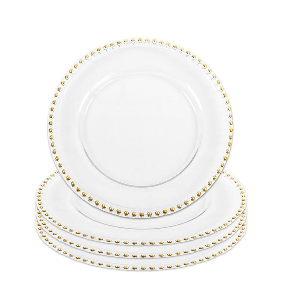 จานพลาสติกลูกปัดใสอะคริลิคขนาด13นิ้วจานกลมสำหรับตกแต่งในงานแต่งงานจานอาหารค่ำสำหรับการจัดโต๊ะงานอีเว้นท์