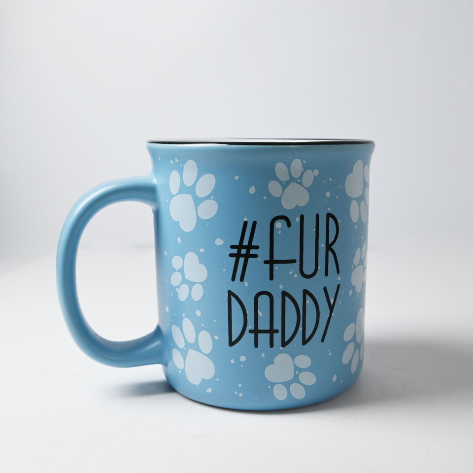 แก้วเซรามิกสีฟ้าน่ารักขนาด13ออนซ์พร้อมพิมพ์ลายอุ้งเท้าและ # ข้อความของคุณพ่อขนสัตว์