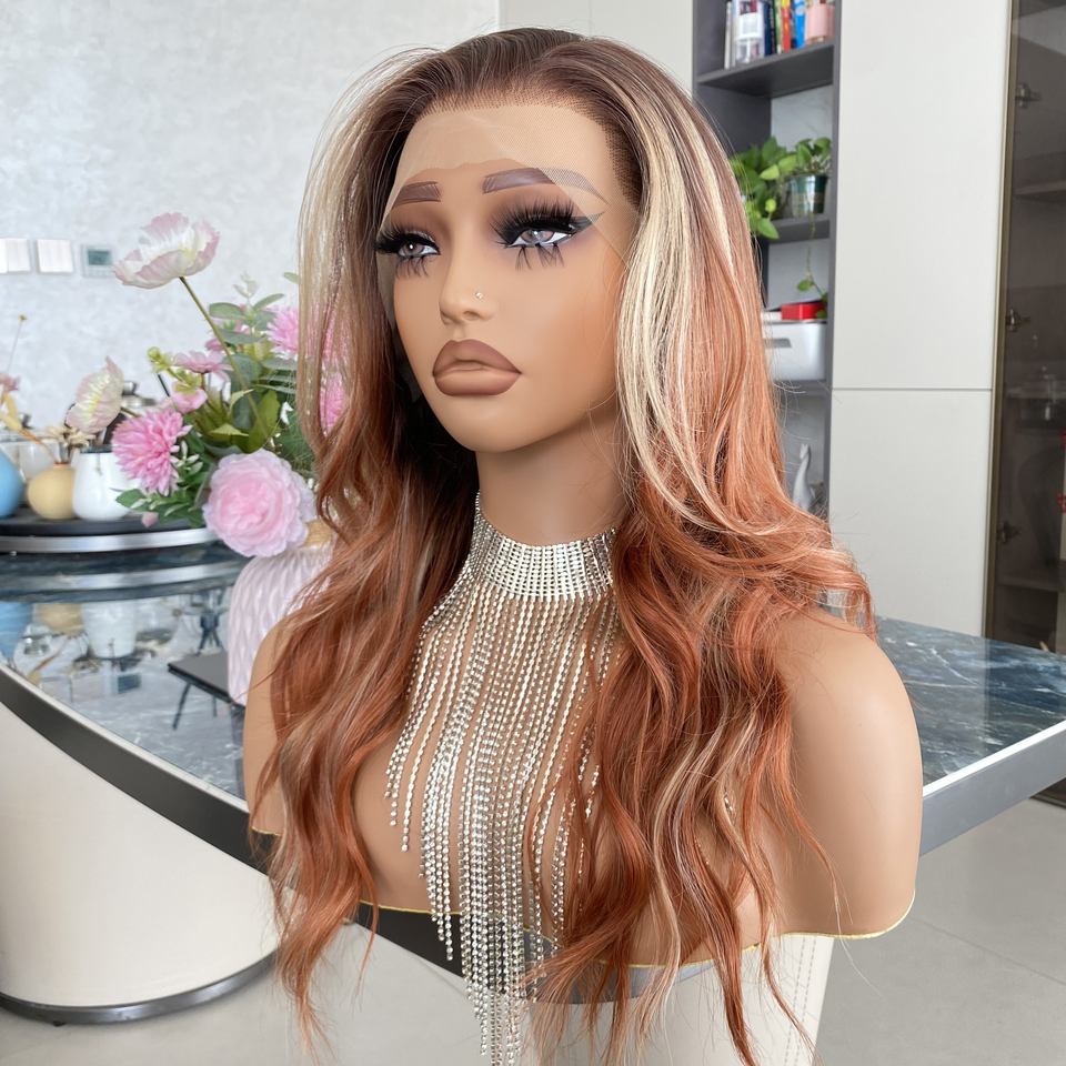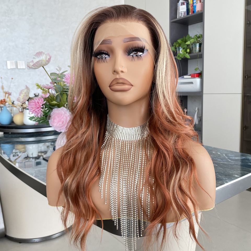 วิกผมสังเคราะห์แบบลูกไม้ฝรั่งเศสใส 13x6 ลอนน้ำ ยาว ทนความร้อน พร้อมผมธรรมชาติที่ถอนมาแล้ว