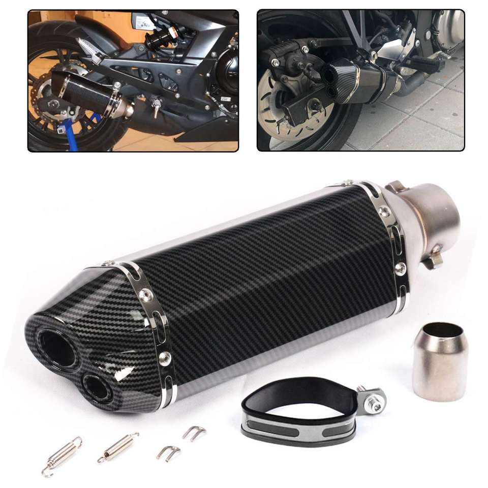 ท่อไอเสียสแตนเลสแบบสวมขนาด 14.6 นิ้ว สำหรับรถจักรยานยนต์ ปลายท่อคู่ ลายคาร์บอน ช่องรับขนาด 2 นิ้ว (38.51 มม.) แบบเชื่อม