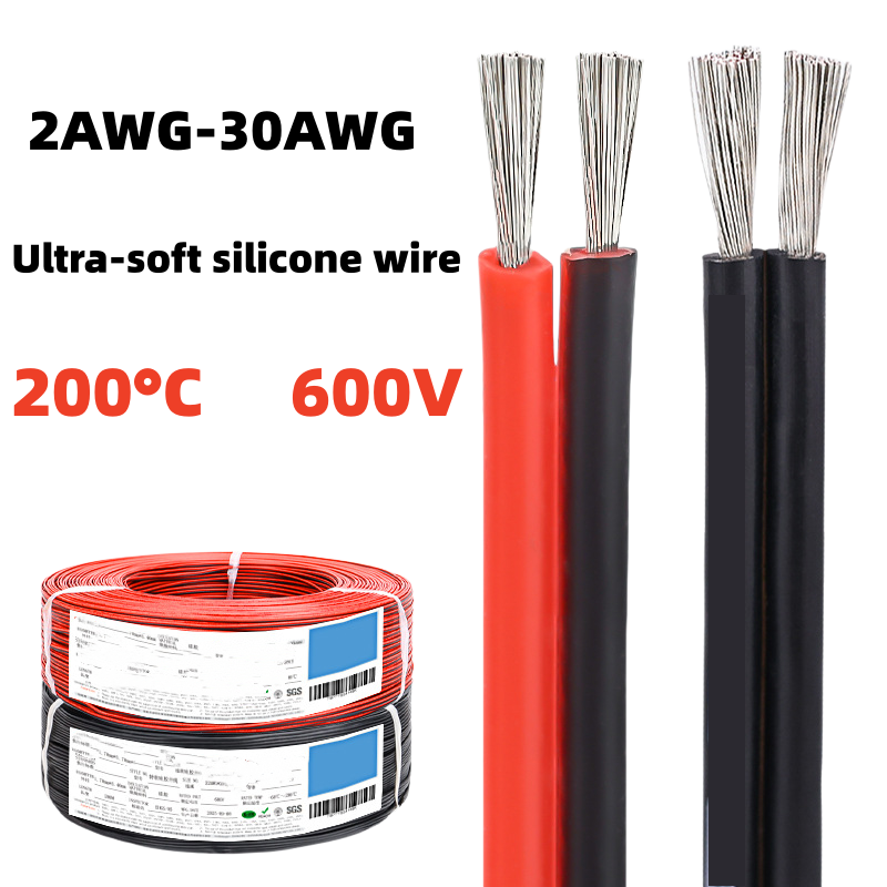 สายซิลิโคนอ่อนนุ่มพิเศษขนาด 14 AWG UL1015, รองรับกระแสไฟสูง 600V 105 องศาเซลเซียส ° ทนต่ออุณหภูมิสูง สำหรับแบตเตอรี่ลิเธียมรุ่น RC