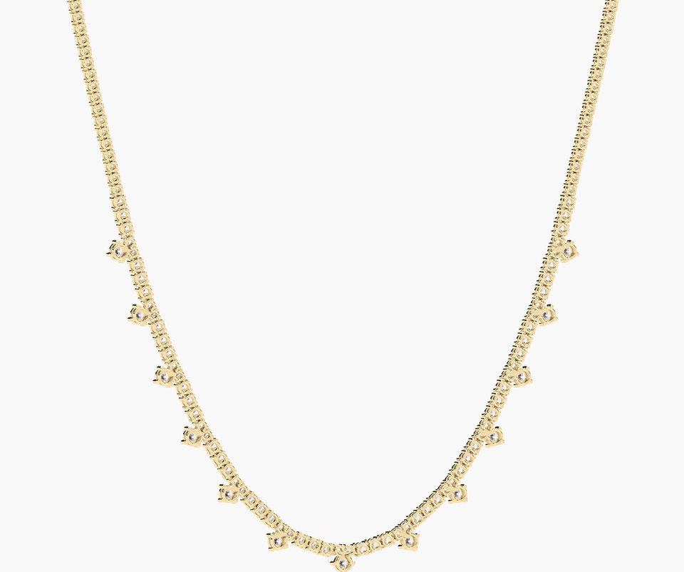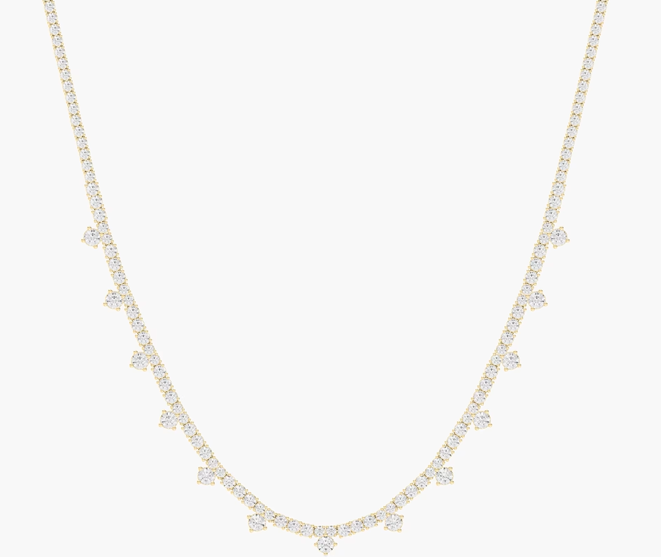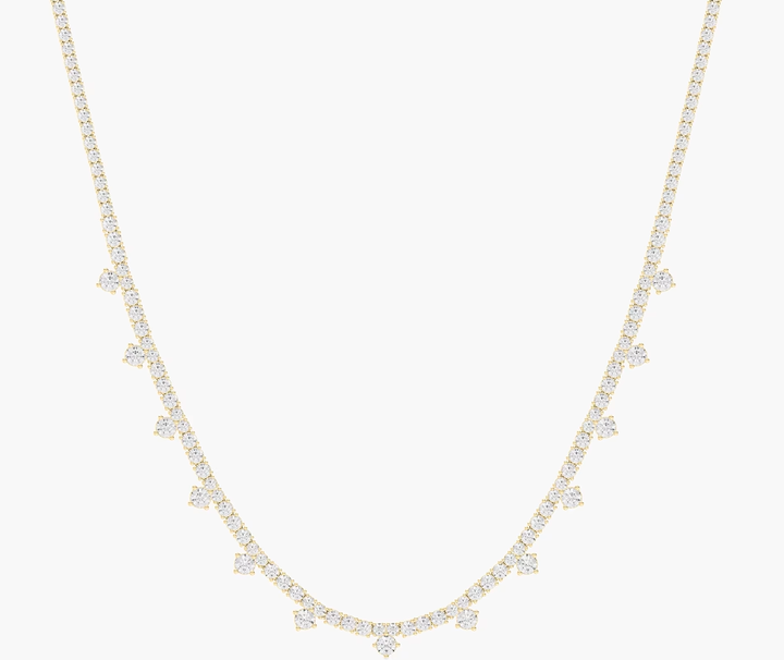 สร้อยคอเทนนิสทองคำ 14K สีเหลือง ขนาด 14 นิ้ว ชุบโรเดียม ประดับเพชรเลี้ยงในห้องปฏิบัติการ เกรด DEF น้ำหนัก 8.05 กะรัต ความสะอาด VVS VS แบบห้อย ผู้จำหน่ายเครื่องประดับ B2B