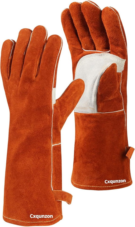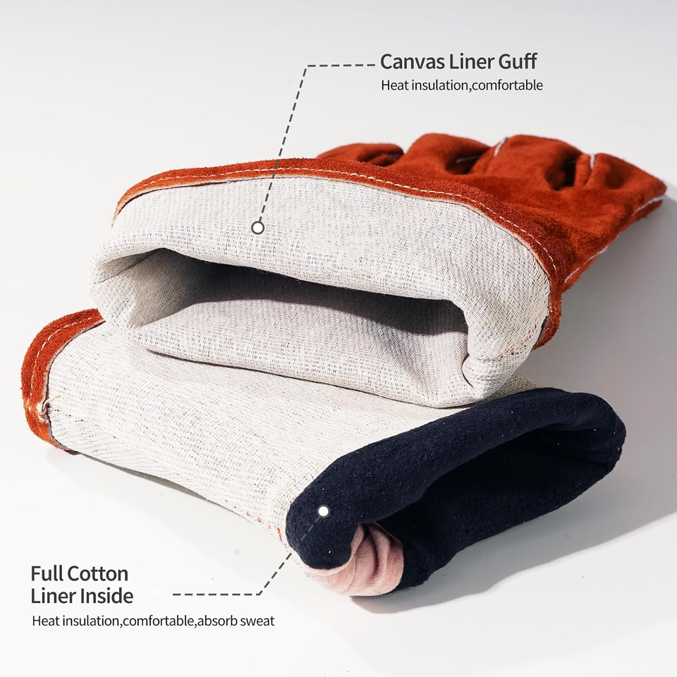 ถุงมือหนังแท้14นิ้วถุงมือปาล์มคู่ทนความร้อนแขนยาวสำหรับมิกแก๊ซทุกวันเตาย่างบาร์บีคิวเตาผิง