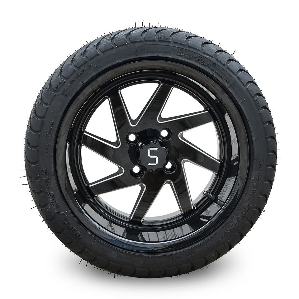 ขอบล้อรถเข็นสีดำเงา/ขอบล้อสำหรับรถกอล์ฟขนาด14นิ้วขอบล้อและยางรถกอล์ฟ