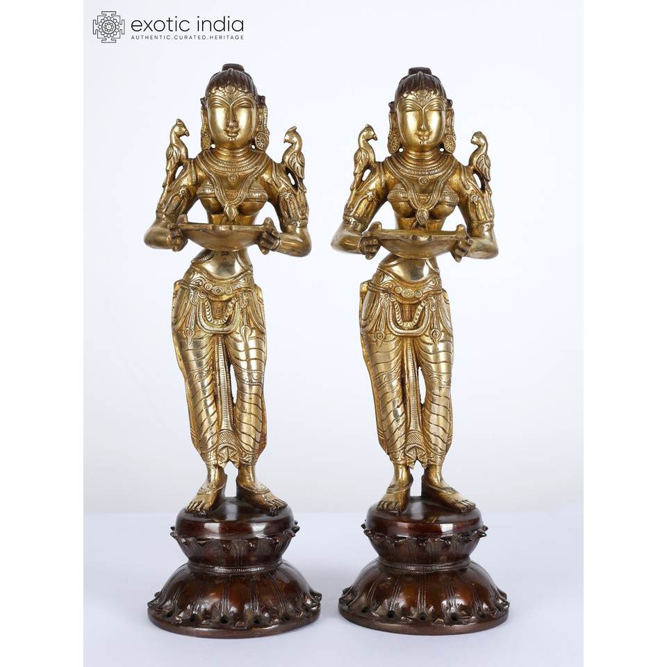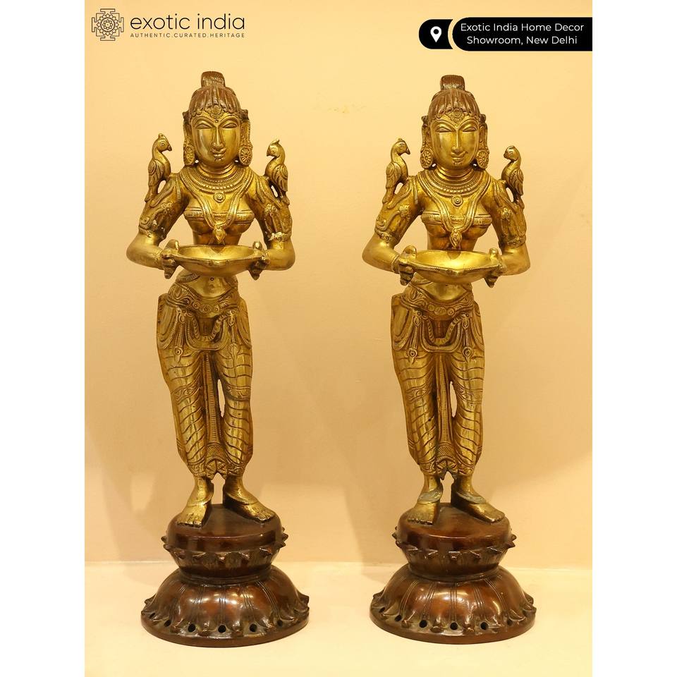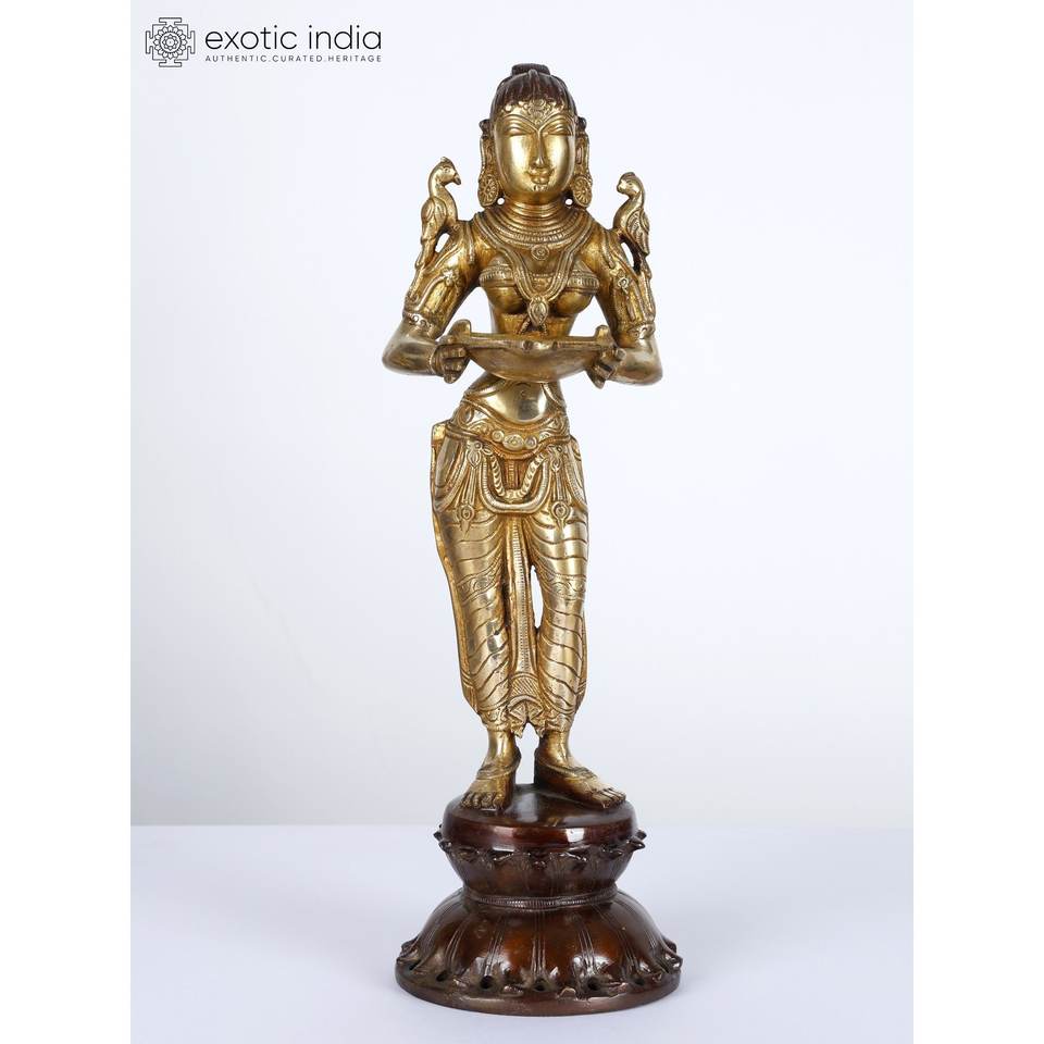 รูปปั้น lakshmi ทองเหลืองลึก14นิ้วรูปปั้นชิ้นเอกสำหรับตกแต่งบ้านและวิหารผลิตในอินเดีย