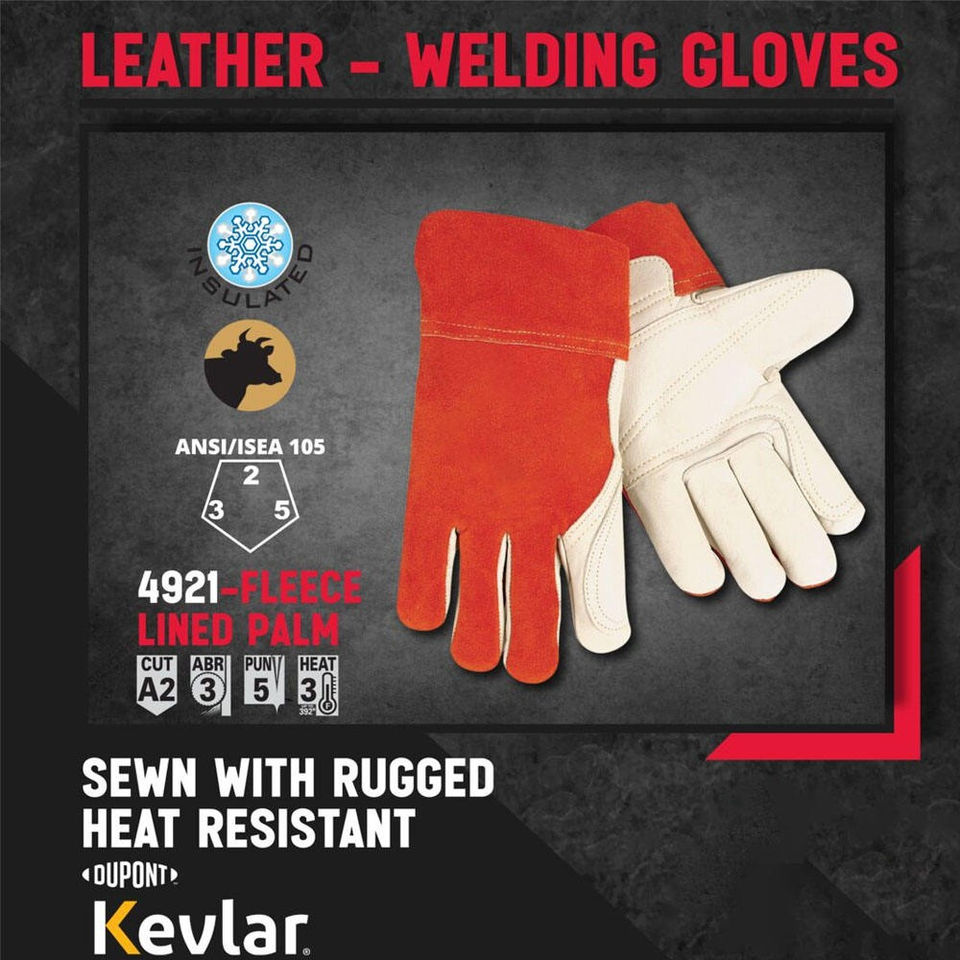 ถุงมือหนังวัวแท้คุณภาพสูง ขนาด 14 นิ้ว สีแดงดำ สำหรับงานเชื่อม ทนความร้อนสูง ถุงมือหนังยาว ป้องกันมือ ได้รับการรับรองความปลอดภัย