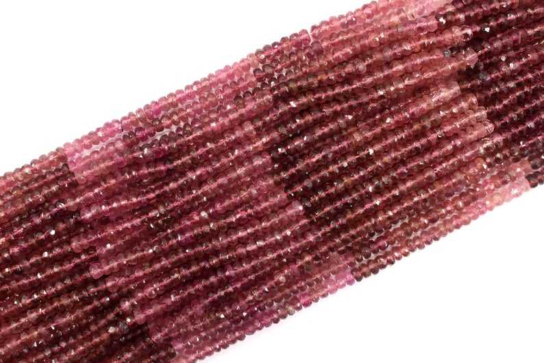 14 "ยาว1สาระธรรมชาติสีชมพูทัวร์มาลีนเพชรพลอยเหลี่ยมทำ Rondelle ลูกปัดทำเครื่องประดับสร้อยคอทำด้วยมือ
