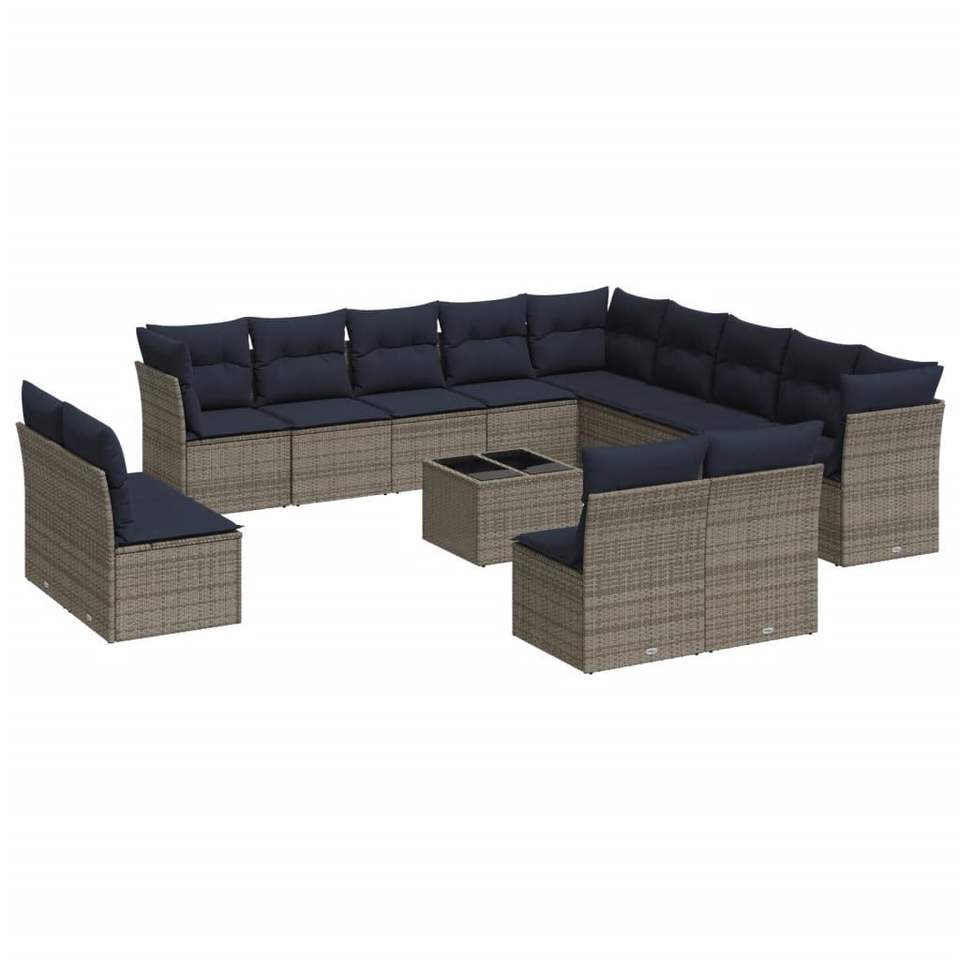 ชุดโซฟาลานบ้านหวายโพลีสีเทา 14 ชิ้นพร้อมชุดเบาะรองนั่งในสวน