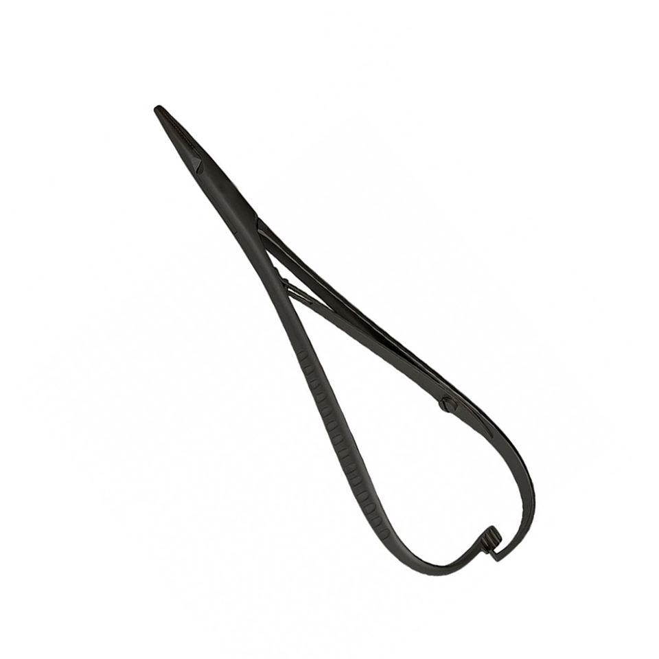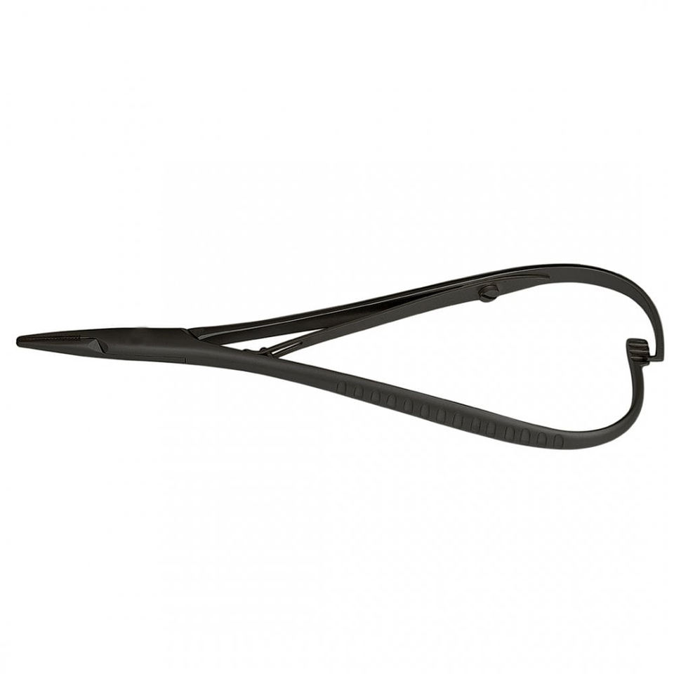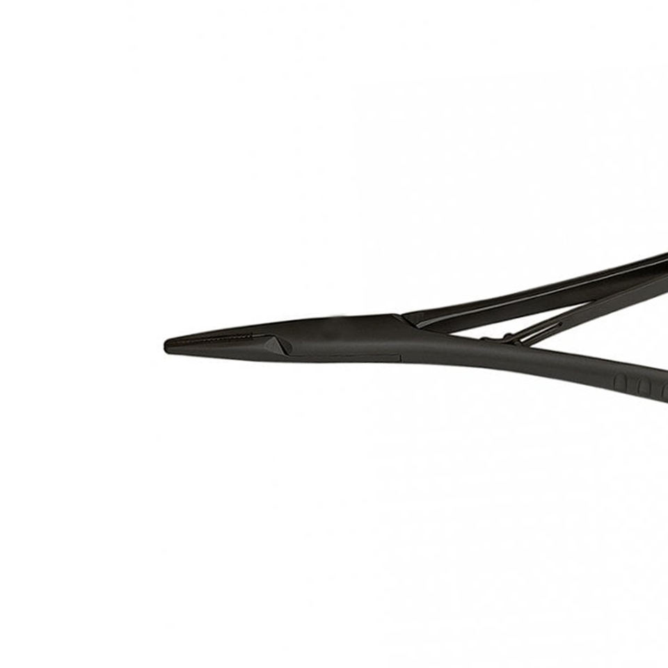ที่จับเข็มเซรามิกสีดำขนาด 14 ซม. ยี่ห้อ Mathieu แบบมีตัวล็อคแบบ Ratchet ปลายหยัก สแตนเลสสตีล สำหรับงานทันตกรรมจัดฟัน ออกแบบตามหลักสรีรศาสตร์