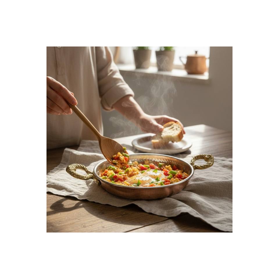 กระทะทองแดงหนา 14 ซม. พร้อมลวดลาย สำหรับทอดและทำไข่