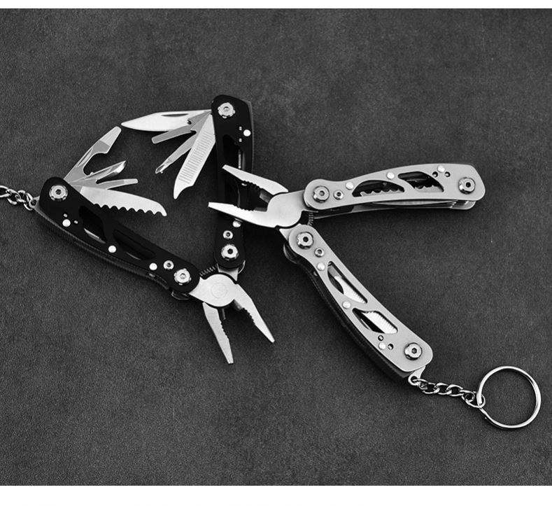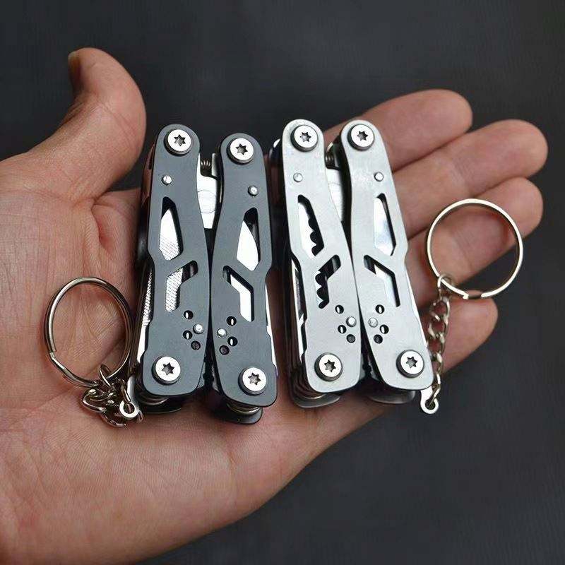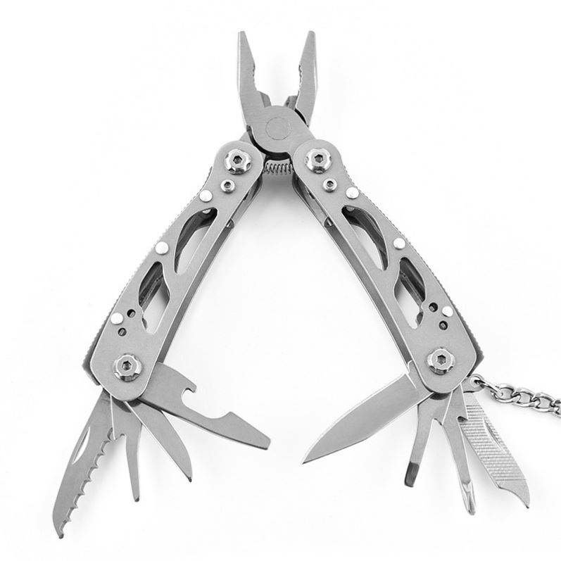 ชุดเครื่องมืออเนกประสงค์พกพา 14 in 1 สำหรับกิจกรรมกลางแจ้ง ทำจากสแตนเลส OEM พร้อมพวงกุญแจ ประกอบด้วยคีมพับอเนกประสงค์
