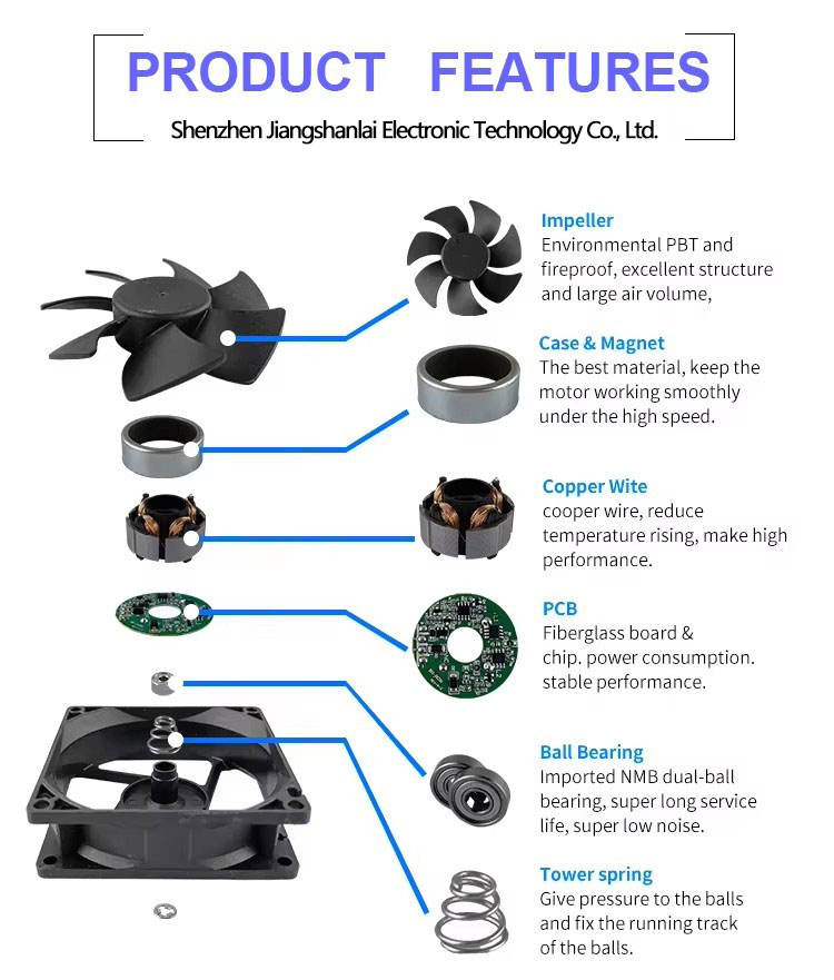 พัดลมระบายความร้อนแกน DCลักษณะ