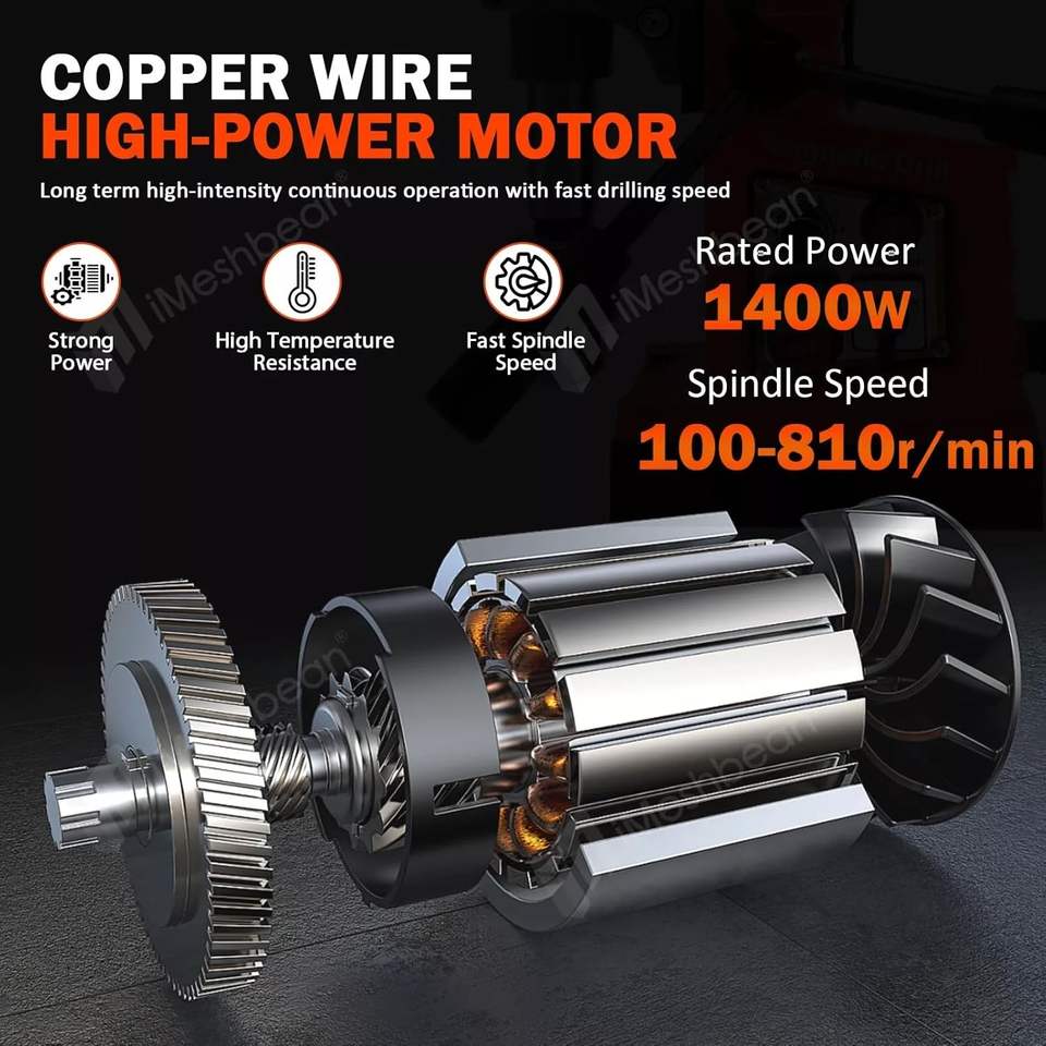 1400W Industrial Magnetic Drill Press 2" Dia. 2922lbf/13000N Mag Force 810 RPM Electric Drilling Machine 2922lbf/13000N Mag