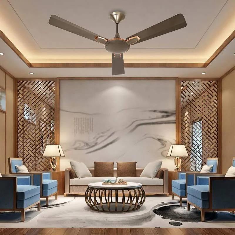 พัดลมเพดานขนาดใหญ่ 48 นิ้ว ยี่ห้อ Bajaj Cromptonational Aura ใบพัดอลูมิเนียม 3 ใบ มอเตอร์ BLDC ทองแดง พร้อมรีโมทคอนโทรล ใช้ไฟ 220V/380V