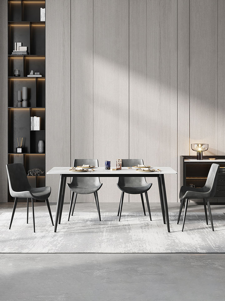 1400x800*H750mm High Quality Minimalist Ceramic Top Rectangular Dinning Table Set Dining Room Furniture 6 Leather Chairs
