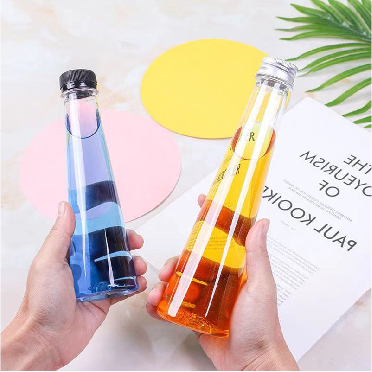 ขวด PET ทรงกรวยขนาด 140 มล.-350 มล. พร้อมฝาเกลียว พิมพ์สกรีน โปร่งใส สำหรับเครื่องดื่ม น้ำผลไม้ โซดา