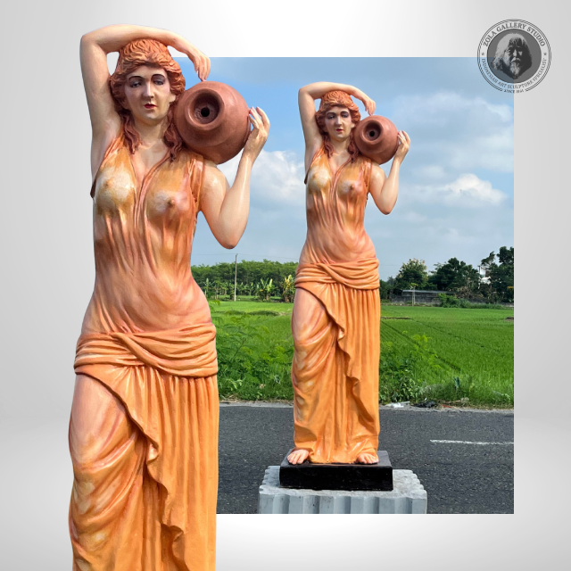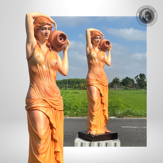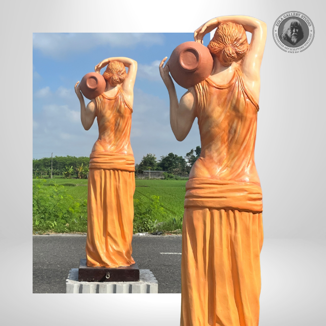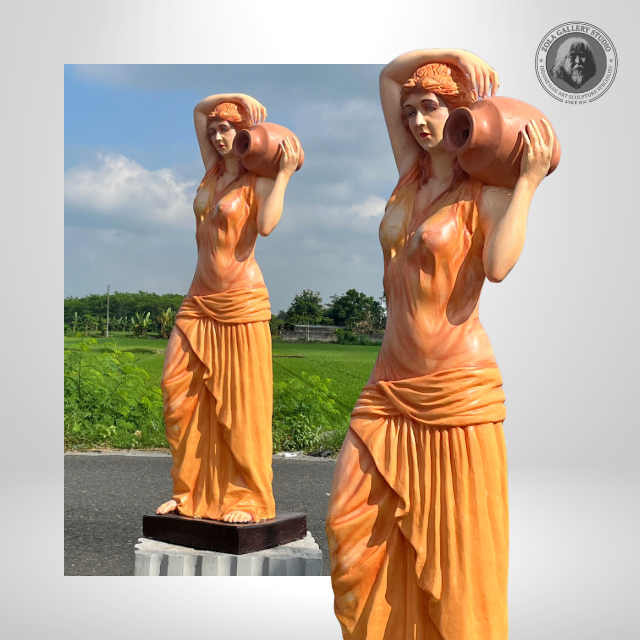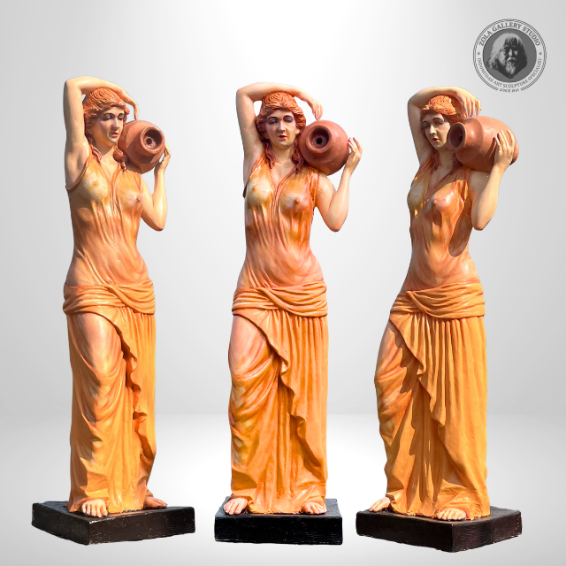 145 cm Greek Water Carrier Statue Gold Orange Dress Hand Painted Fiber Sculpture for Artistic Outdoor Spaces Luxury Interiors