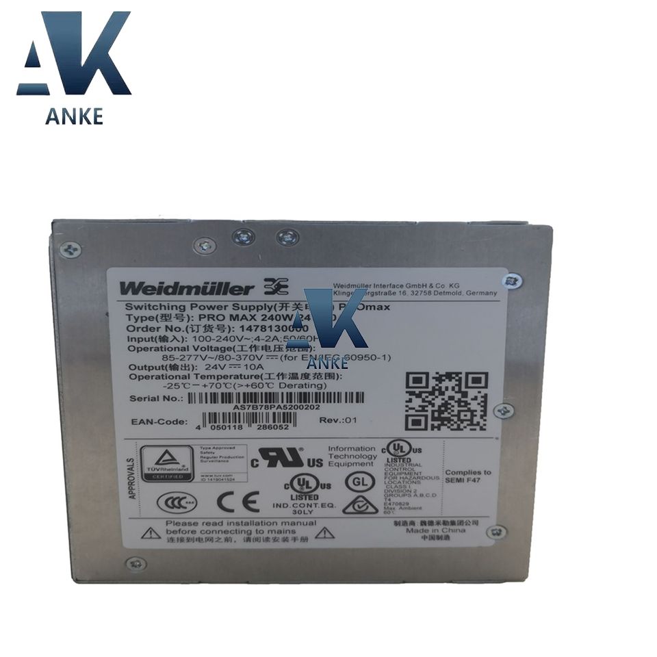 1478130000 Weidmueller แหล่งจ่ายไฟ, ชุดจ่ายไฟสวิตช์โหมด, 24V PRO MAX 240W 24V 10A Weidmuller