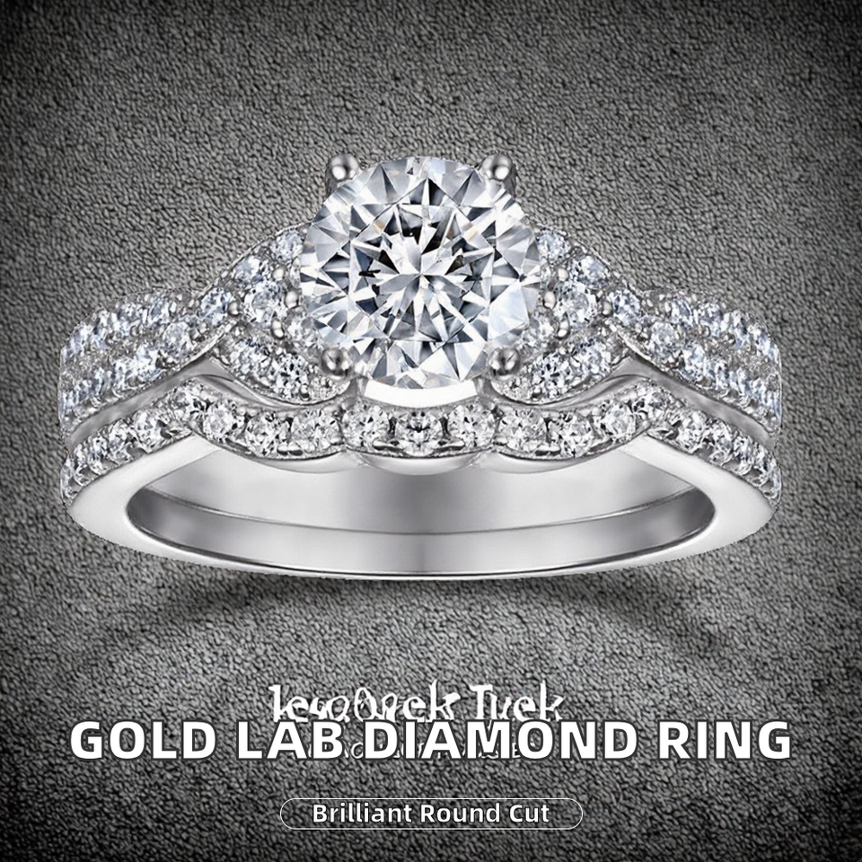 แหวนเพชรแล็บโกรว์ 14K 18K ทองคำแท้ สำหรับชุดหมั้นและแต่งงานแบบมินิมอลคลาสสิก ได้รับการรับรอง น้ำหนัก 1.5 กะรัต ทรงบริลเลียนท์ แหวนครึ่งวงสำหรับทั้งชายและหญิง