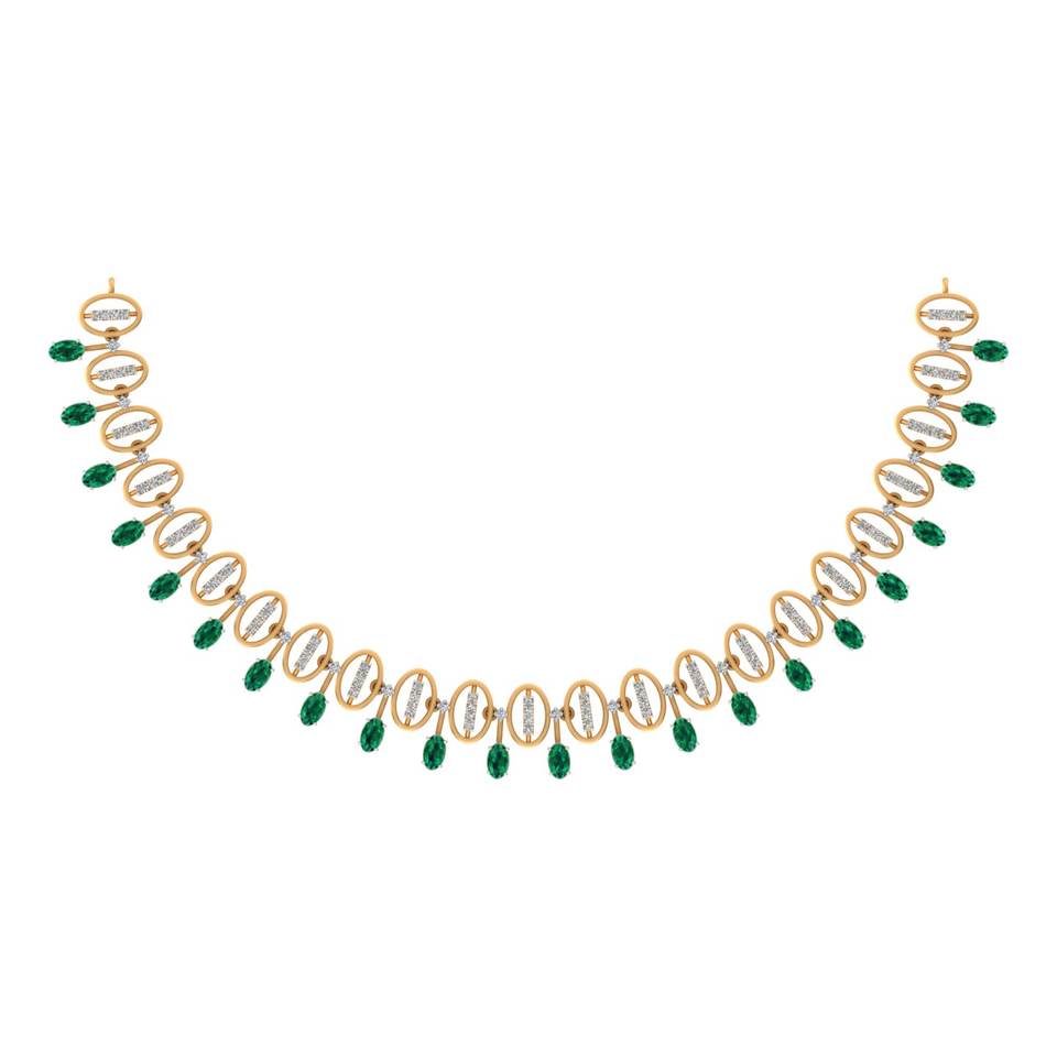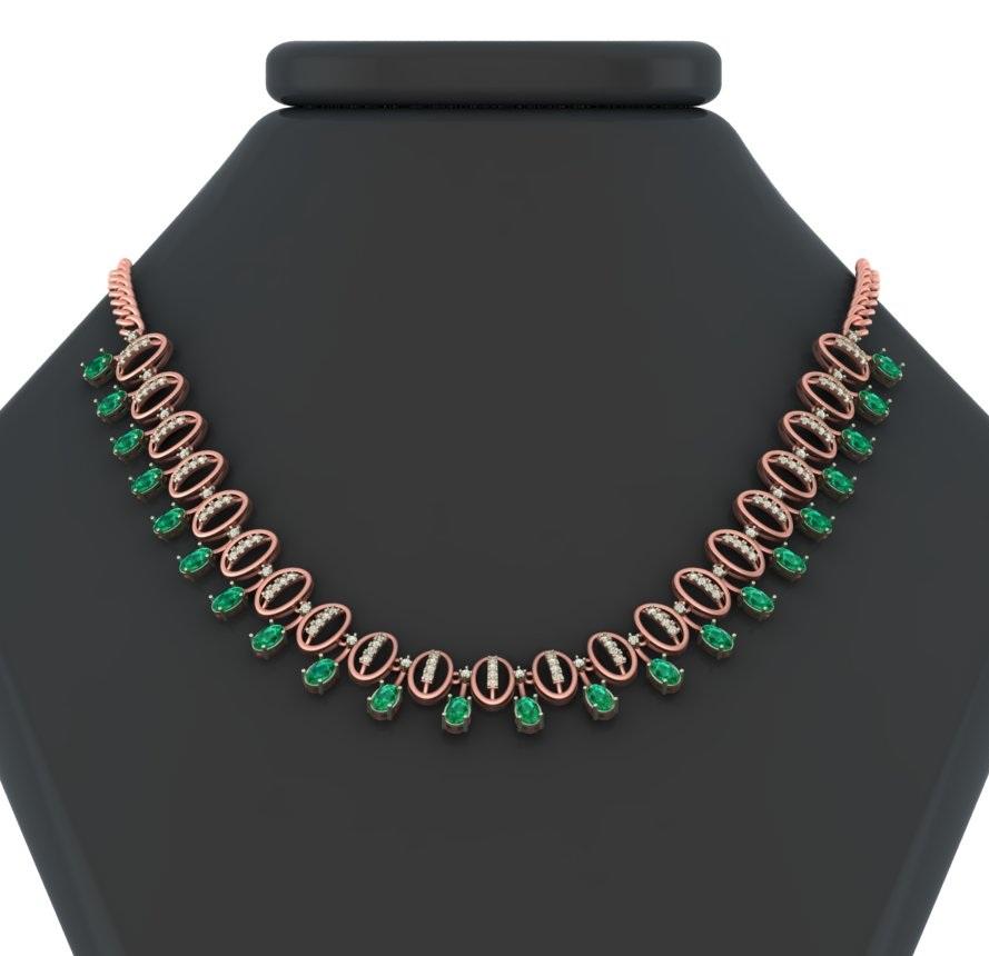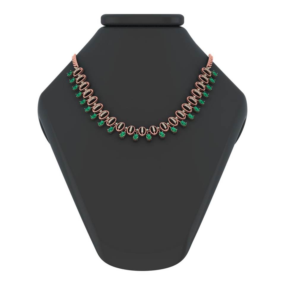สร้อยคอโรสโกลด์14K/18K ประดับเพชรธรรมชาติหินสีเขียวมรกตเครื่องประดับชั้นดีสำหรับงานแต่งงานของขวัญ