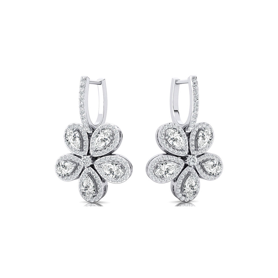 ต่างหูทองคำแท้ 14K 18K รูปทรงดอกไม้หรูหรา ประดับเพชรเพาะเลี้ยงในห้องปฏิบัติการ น้ำหนักรวม 3.31 กะรัต ได้รับการรับรองจาก IGI ของขวัญสำหรับผู้หญิง