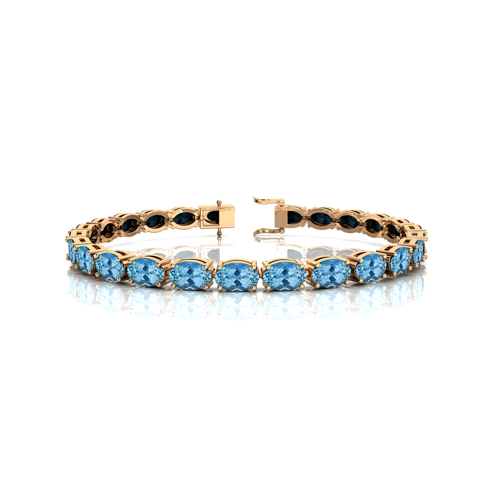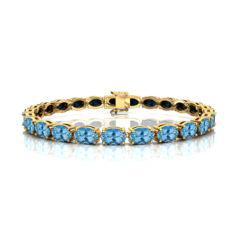 14K 18K แข็งทองธรรมชาติวงรีตัดพลอยสีฟ้าคลาสสิกสร้อยข้อมือเทนนิสได้รับการรับรองเครื่องประดับที่ดีของขวัญสำหรับปาร์ตี้