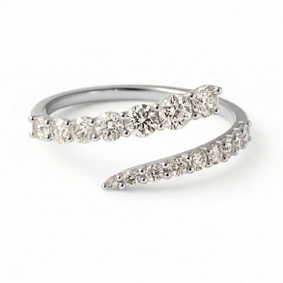 แหวนทองคำขาว 14K/18K ประดับเพชรทรงกลมแบบเปิด แหวนเพชรทรงเกลียวแบบห่อ แหวนเพชรเลี้ยงในห้องปฏิบัติการ เครื่องประดับแฟชั่นทันสมัย ของขวัญสำหรับเธอ แหวนสำหรับวันครบรอบ