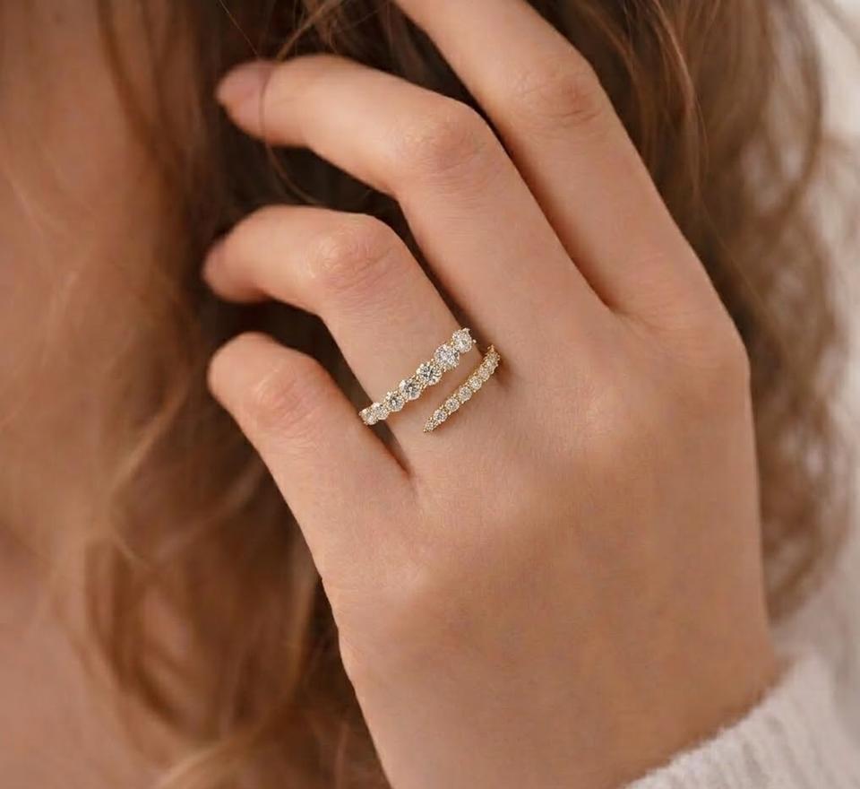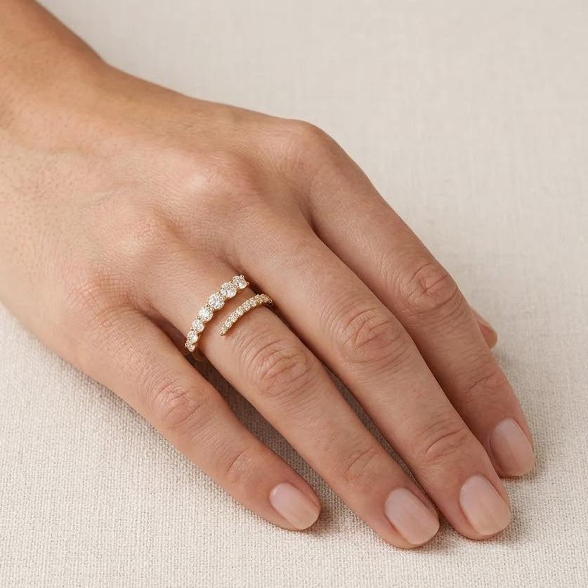 แหวนทอง 14K ดีไซน์เกลียวพันแบบเปิด ปรับขนาดได้ พร้อมประดับเพชร