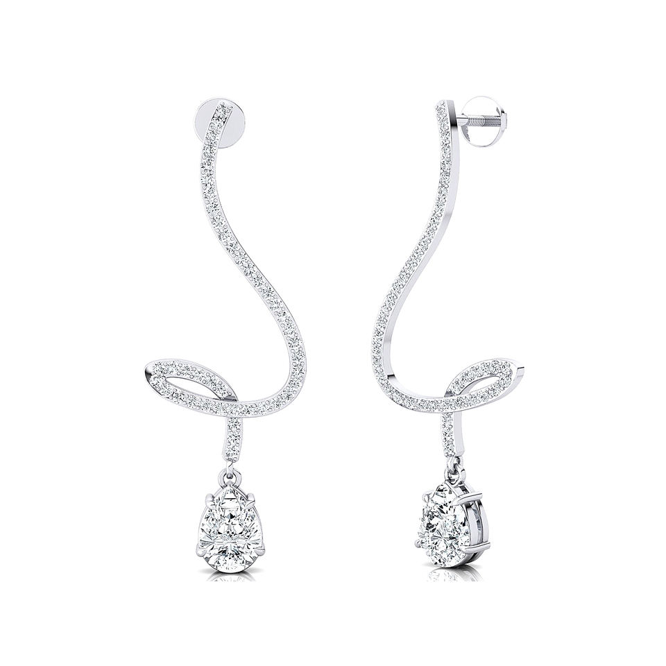 ต่างหูทองคำแท้ 14K 18K ดีไซน์หรูหรา น่ารัก ทันสมัย แบบยาวห้อยระย้า น้ำหนักรวม 2 กะรัต เพชรทรงลูกแพร์ คุณภาพ D VVS รับรองโดย IGI