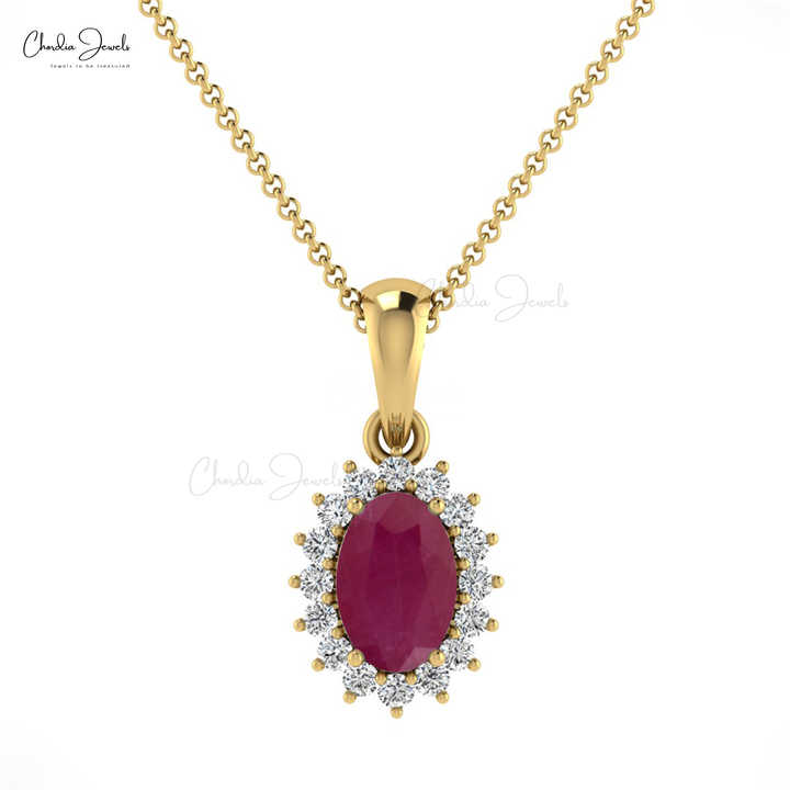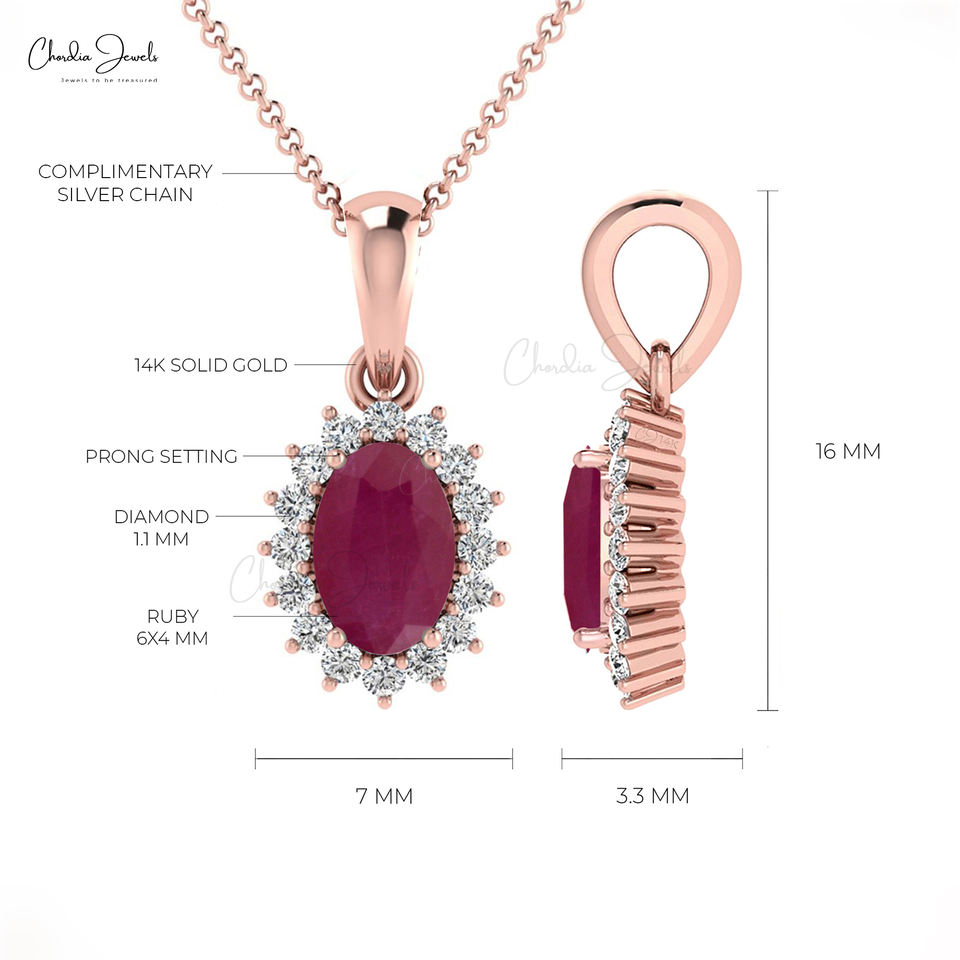 จี้เพชรทรงรัศมีทองคำแท้ 14K ประดับด้วยพลอยทับทิมธรรมชาติ 0.41 กะรัต พร้อมใบรับรอง จิวเวลรี่คุณภาพสูง ขายส่ง รับสั่งทำได้