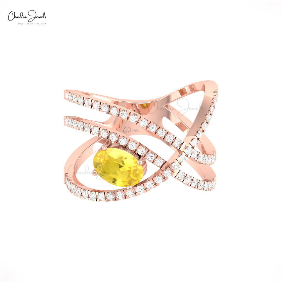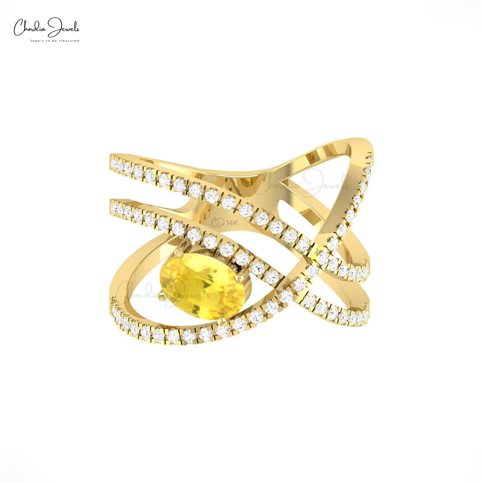 แหวนทองคำแท้ 14K ประดับเพชรหลายเม็ด รูปไข่ 7x5 มม. ประดับไพลินสีเหลือง ดีไซน์ไขว้แบบอินฟินิตี้ แหวนแต่งงานสุดหรูจากดีไซเนอร์ ขายส่ง