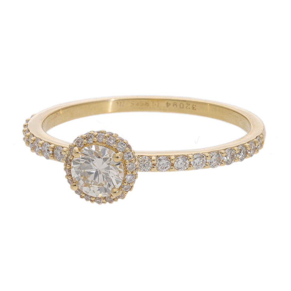 14K Gold 0.59CTW Natural Diamond Halo Ring Classic Round-Cut Center Stone with Pave Accents Sophisticated Timeless Look