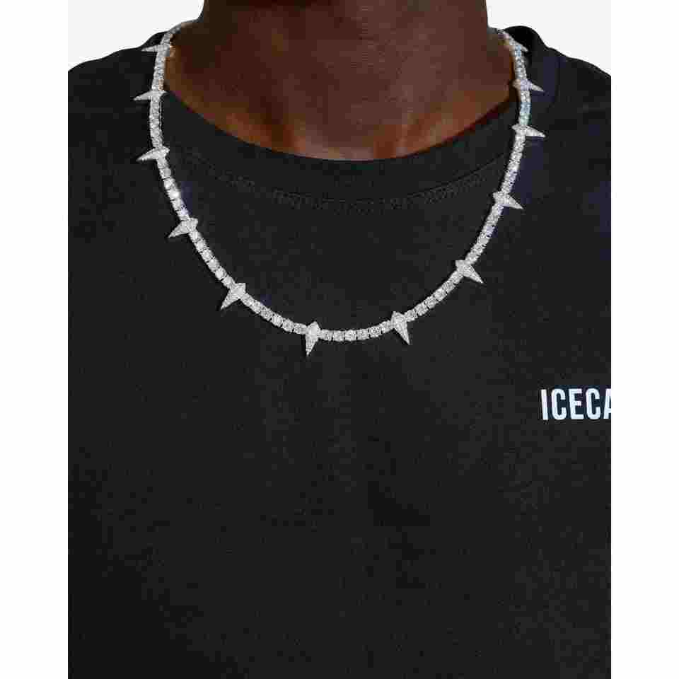 สร้อยคอเทนนิสแบบมีหนามประดับเพชรโมอิสซาไนต์ 4 มม. ทอง 14K คอลเลคชั่นพรีเมียม