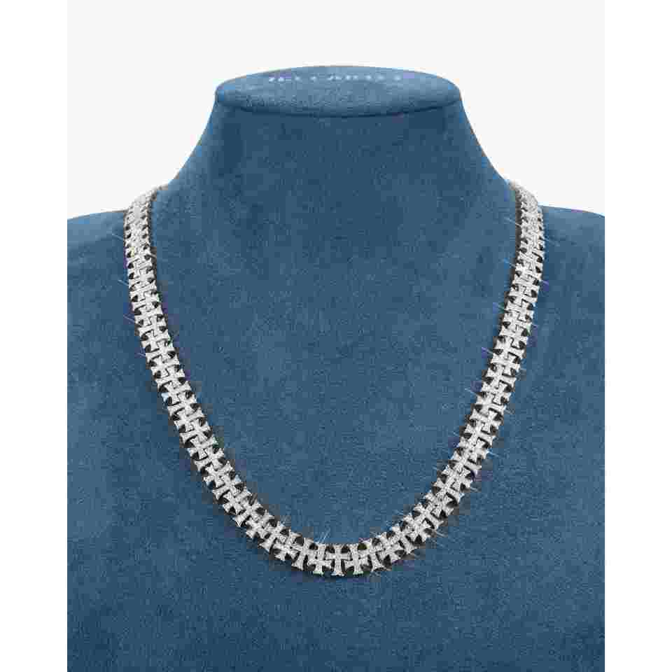 สร้อยคอทองคำขาว 8 มม. VVS ทรงกลมประดับเพชร CZ ลายกากบาท โลหะผสมสังกะสี ของขวัญทางศาสนาคริสต์สำหรับผู้ชาย