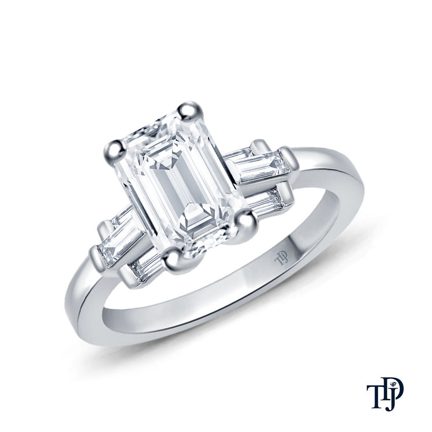 แหวนหมั้นทอง 14K ประดับเพชรทรงบาแก็ตต์ พร้อมเพชรเม็ดใหญ่สีมรกตที่เพาะเลี้ยงในห้องปฏิบัติการ ผู้ผลิตขายส่งและขายปลีกแบบ OEM