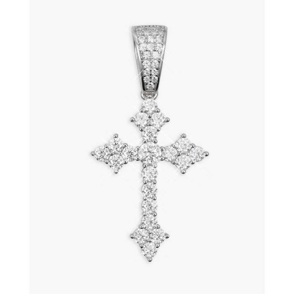 จี้กางเขนคริสเตียนทอง 14K ประดับโมอิสซาไนต์แบบฝังหนามเตย - สง่างามและหรูหรา เหมาะสำหรับพิธีทางศาสนา