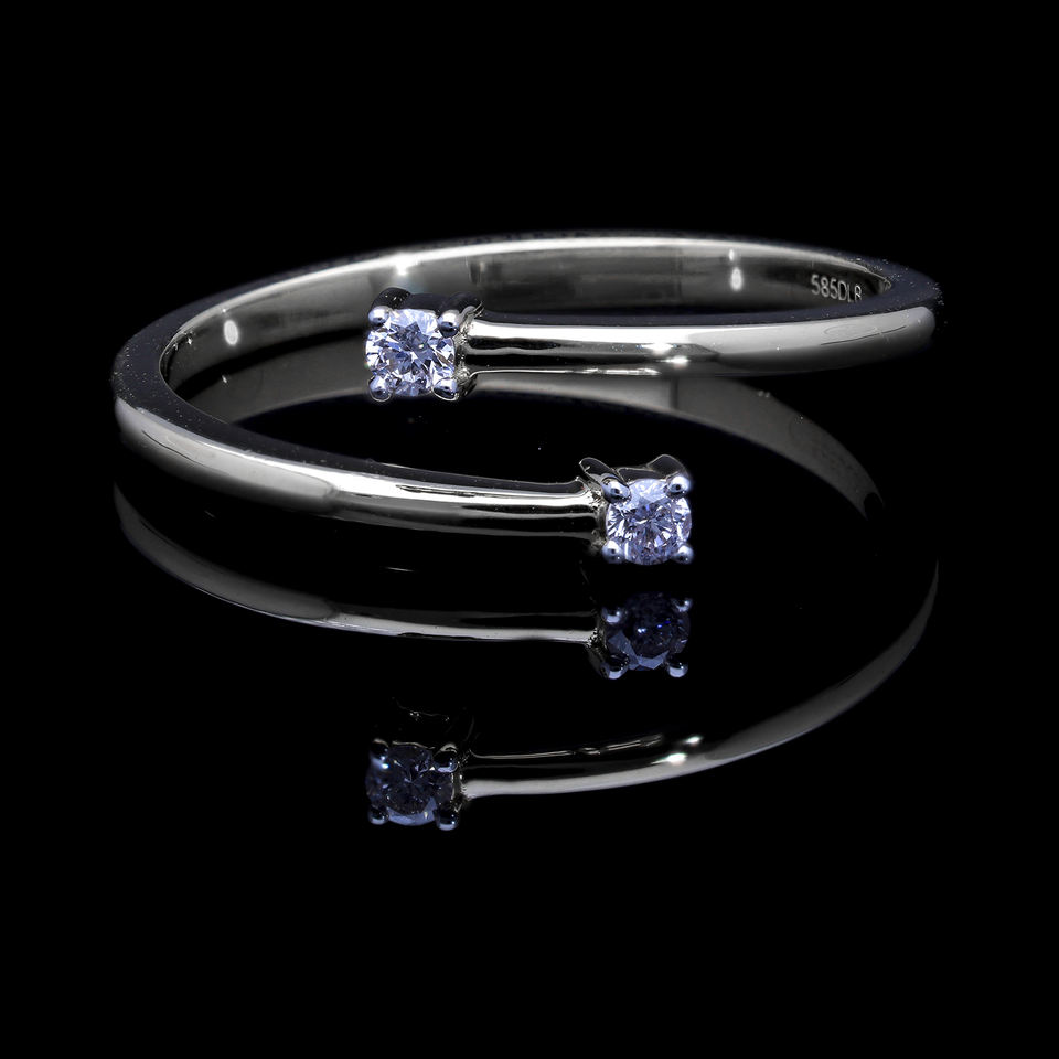 แหวนบายพาสทอง14K พร้อม0.08CTW กลมเพชรตัดสดใสการตั้งค่าสี่ง่ามแบบคลาสสิกทุกวัน