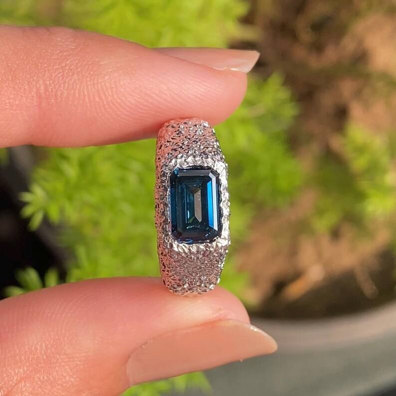 14K Gold Chunky Dome Bezel Ring Minimal Engagement Ring | Statement Blue Emerald Lab Diamond Bezel Set Ring | Ring Gift for Her