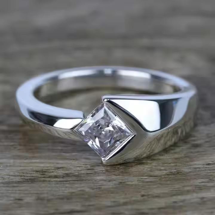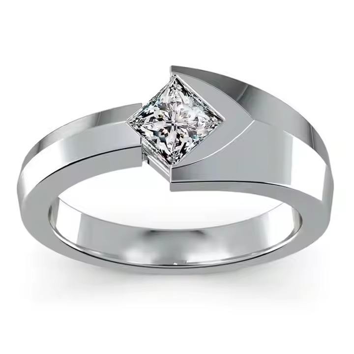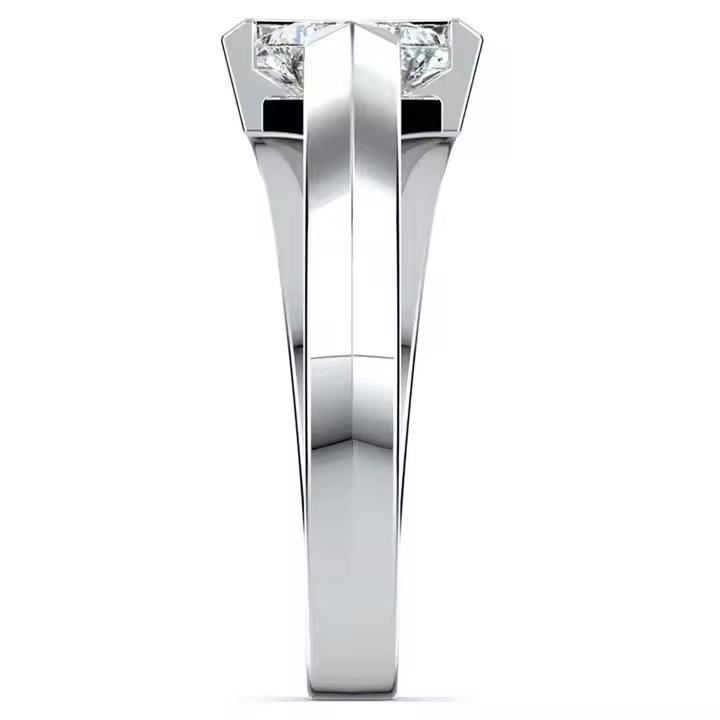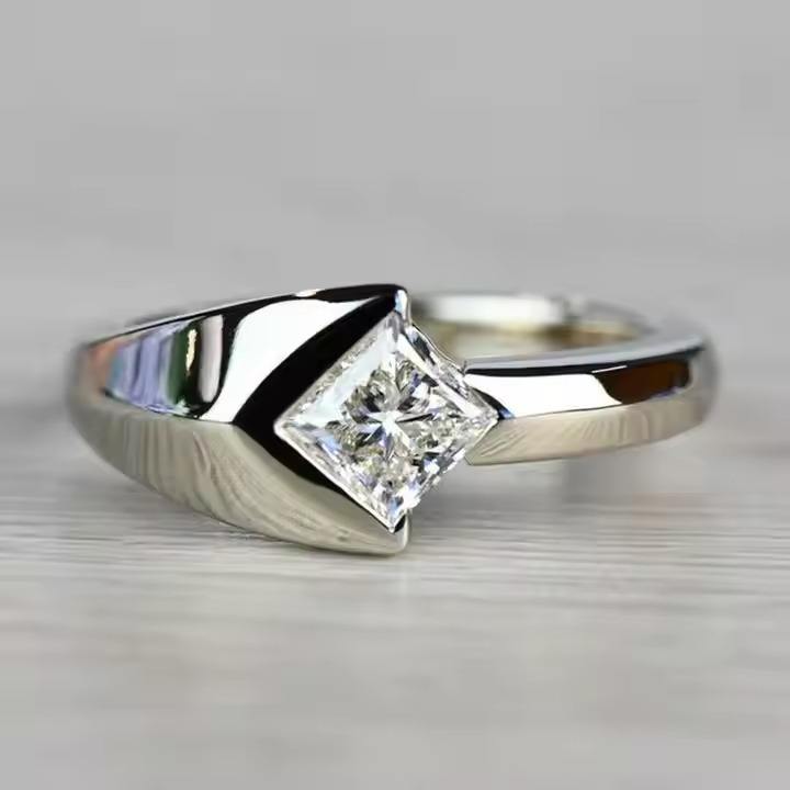 แหวนแต่งงานผู้หญิงทรงทันสมัยทอง 14K ได้รับการรับรองจาก IGI ประดับเพชรทรงเจ้าหญิงแบบ East West เพชรเลี้ยงในห้องปฏิบัติการ ชุบทอง