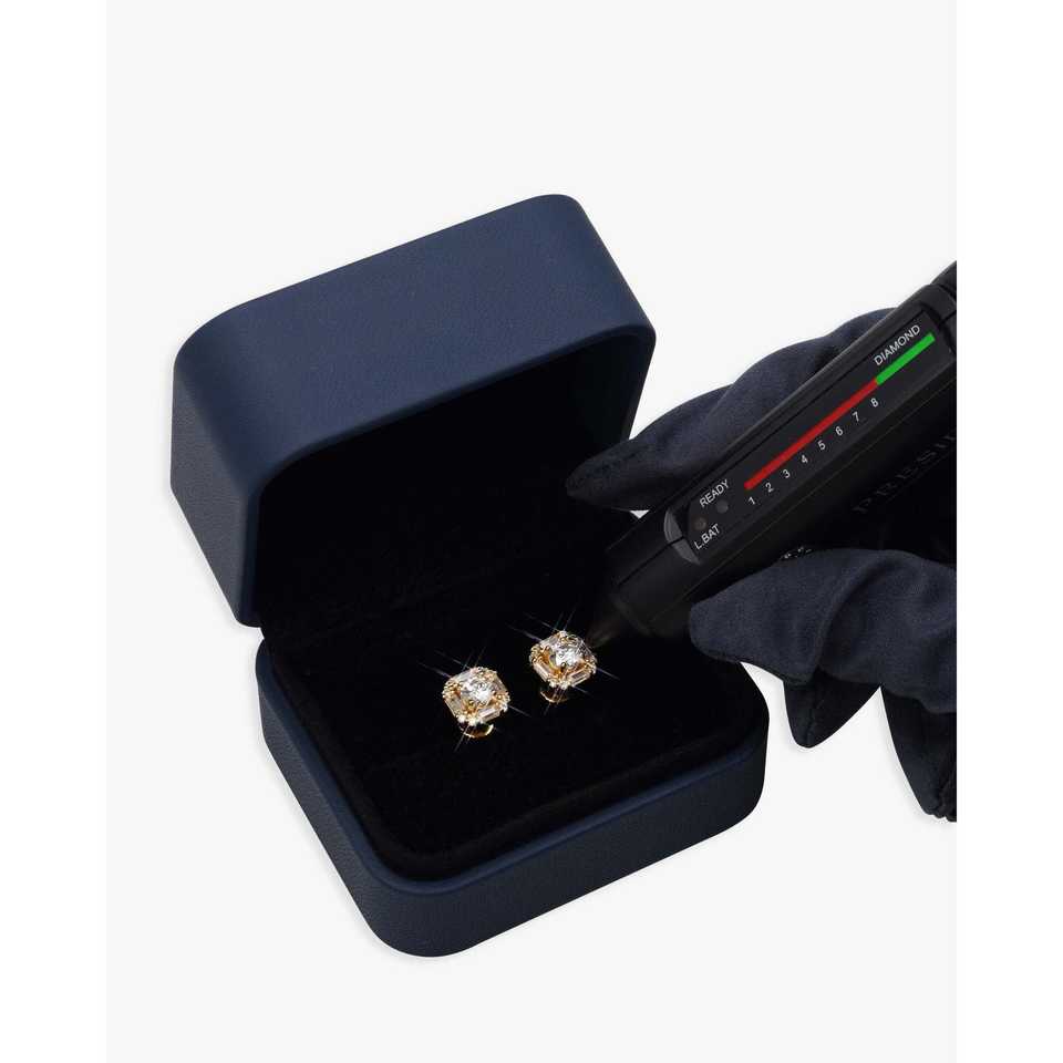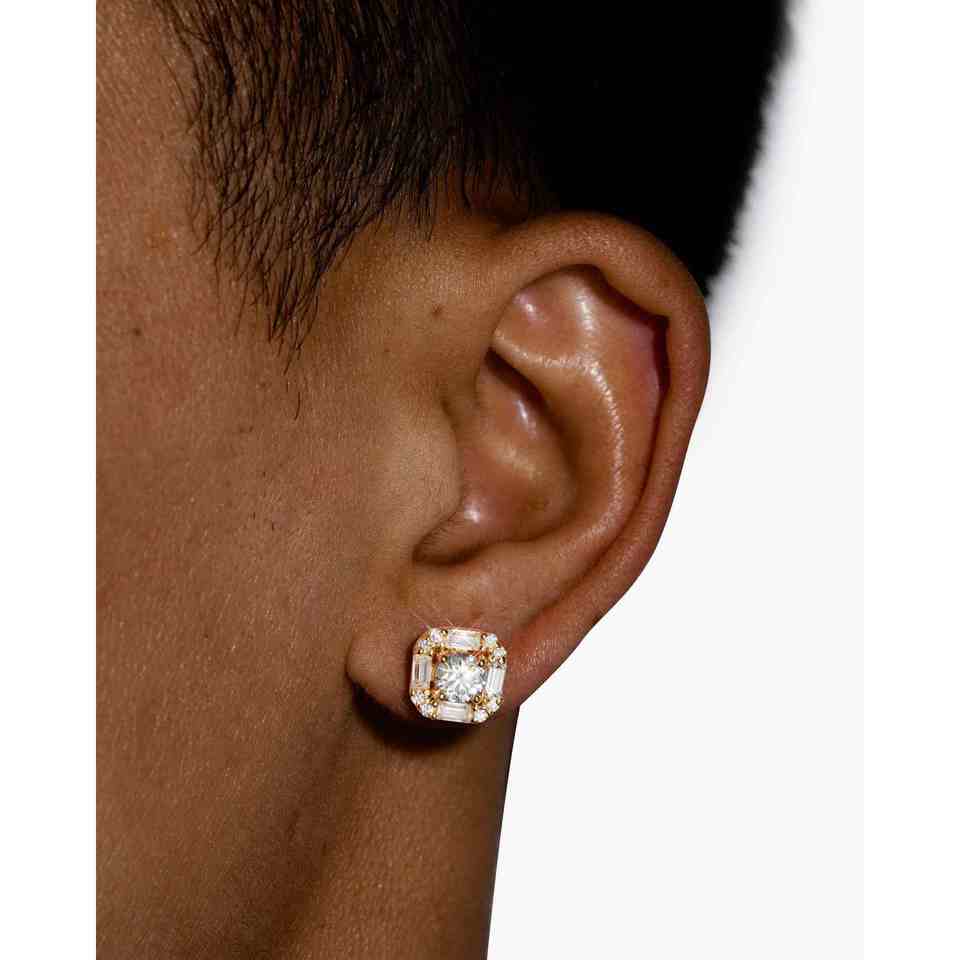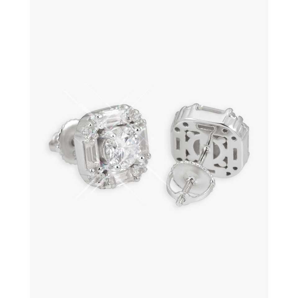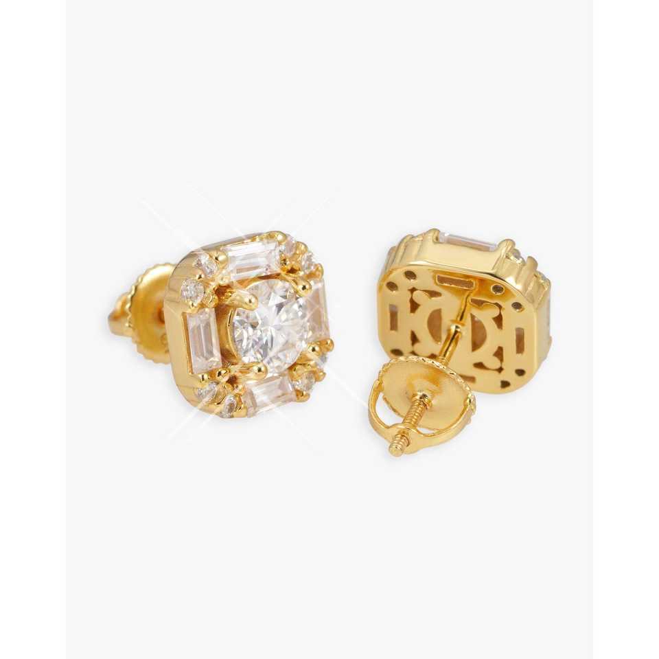 ต่างหูทอง 14K สี D ประดับเพชรโมอิสซาไนต์ทรงบาแกตต์แบบฮาโล
